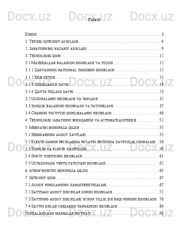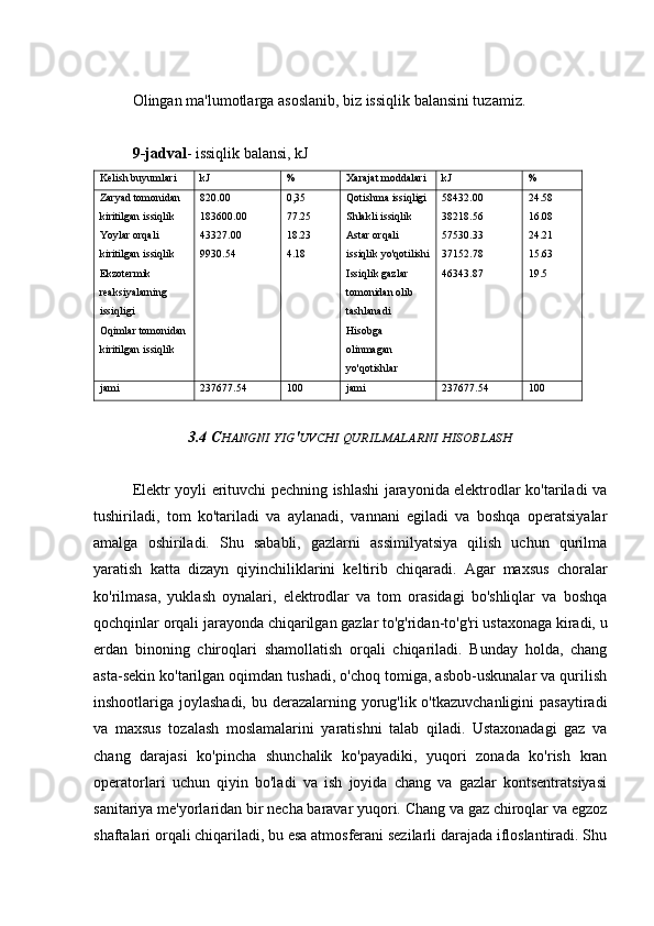 3.3 Issiqlik balansini hisoblash va tayyorlash