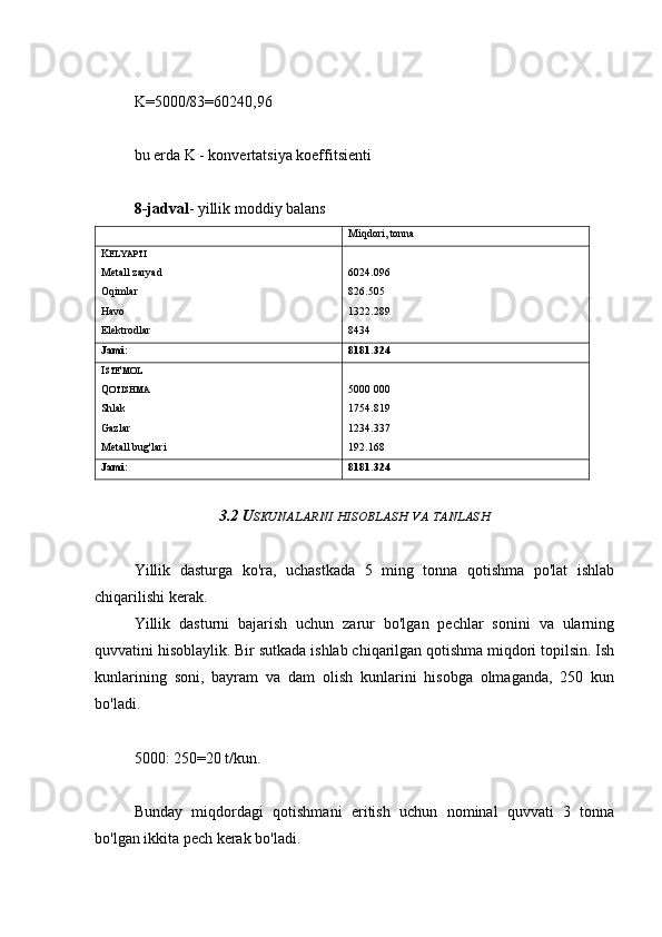 3.2 Uskunalarni hisoblash va tanlash