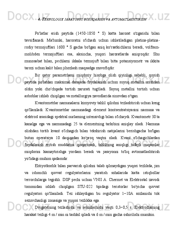 4. Texnologik jarayonni boshqarish va avtomatlashtirish