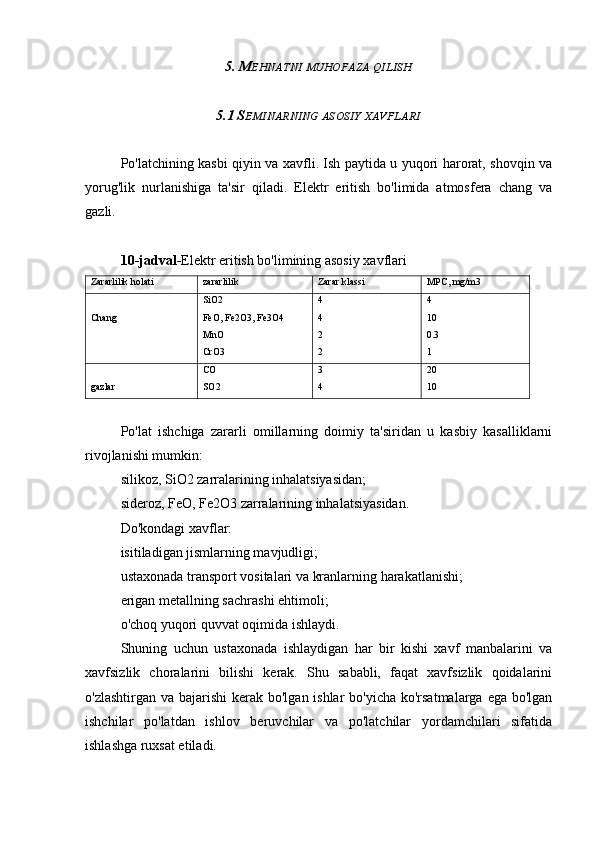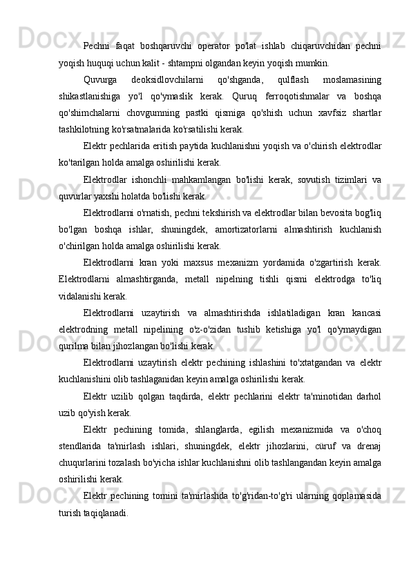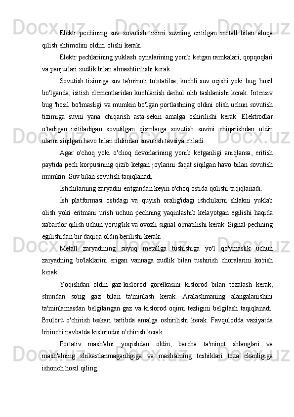 5.2 Elektr kamon pechlarida po'latni eritishda xavfsizlik choralari