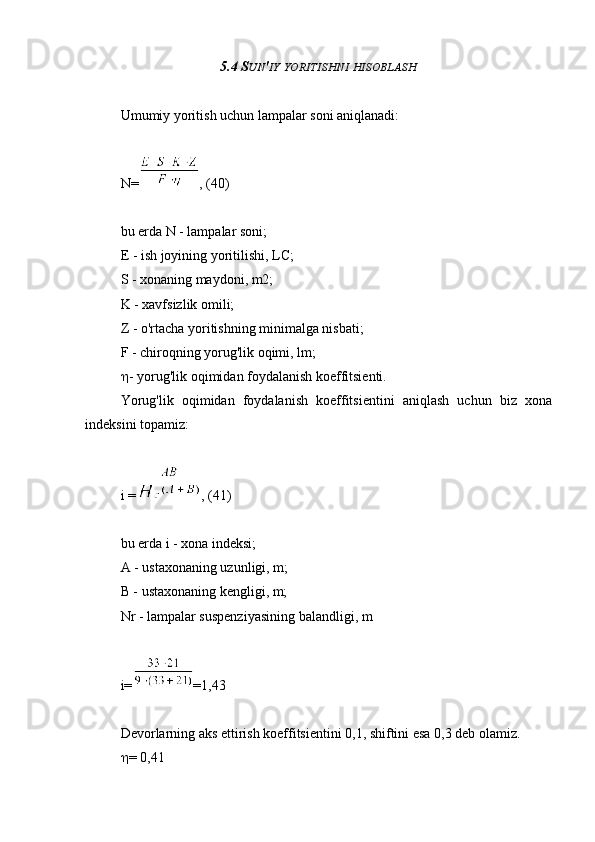 5.4 Sun'iy yoritishni hisoblash