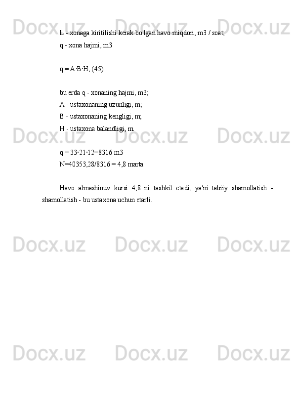 5.5 Ustaxonada ventilyatsiyani hisoblash