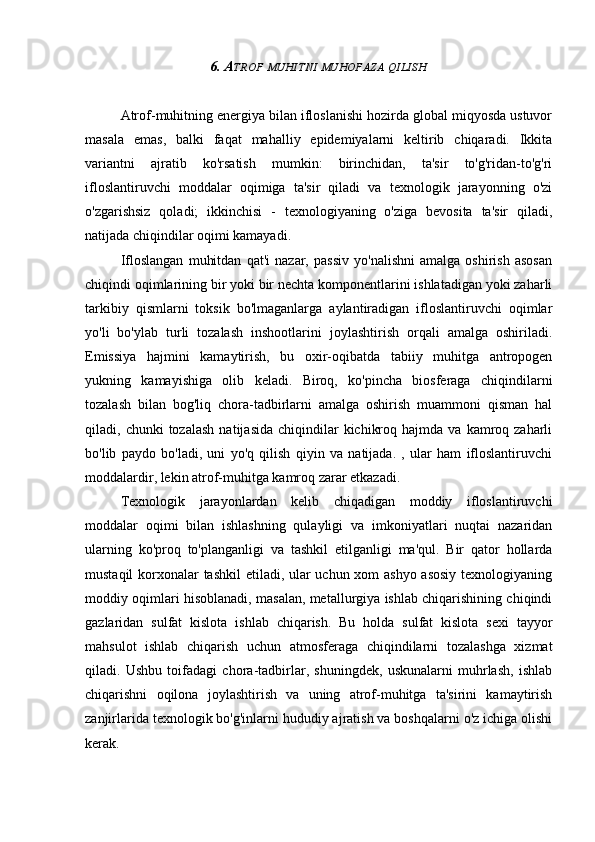 6. Atrof muhitni muhofaza qilish