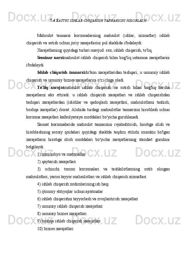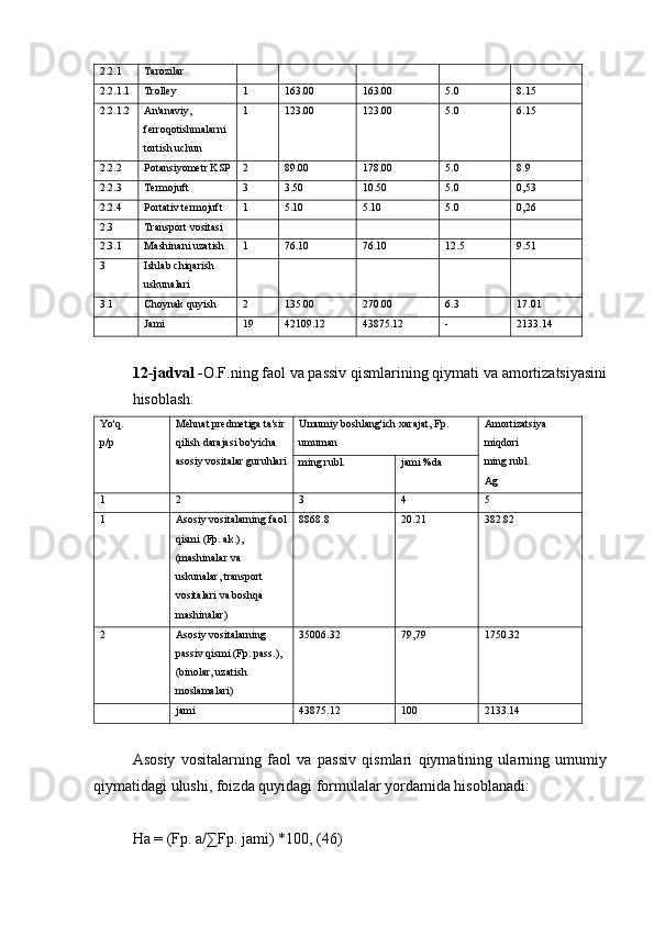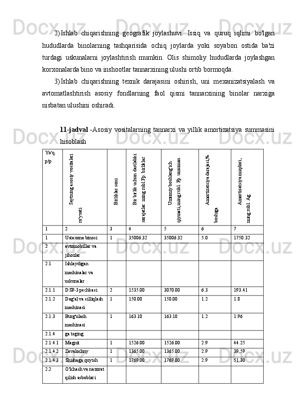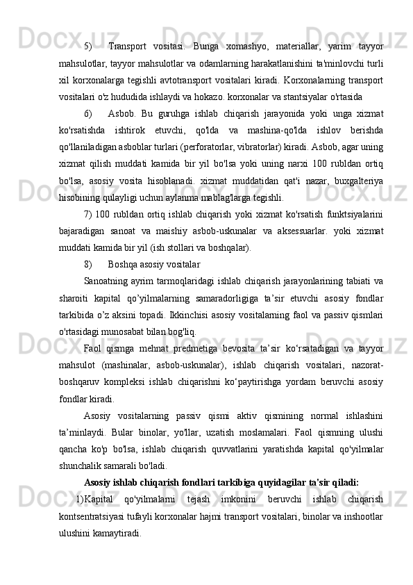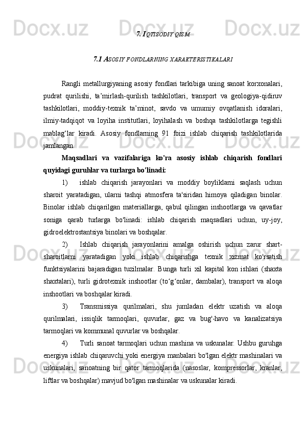 7.1 Asosiy fondlarning xarakteristikalari