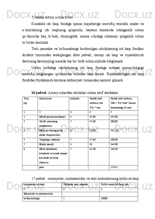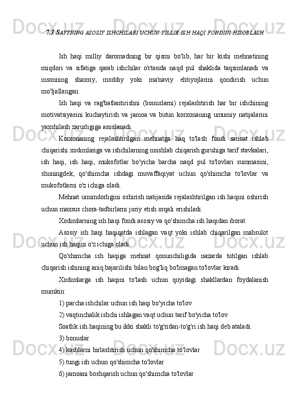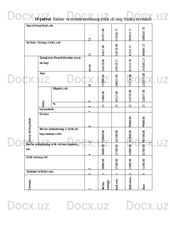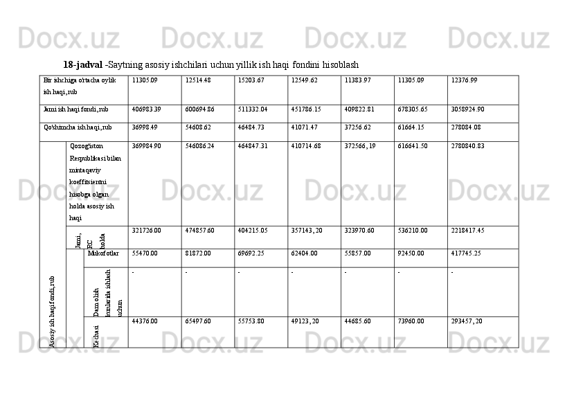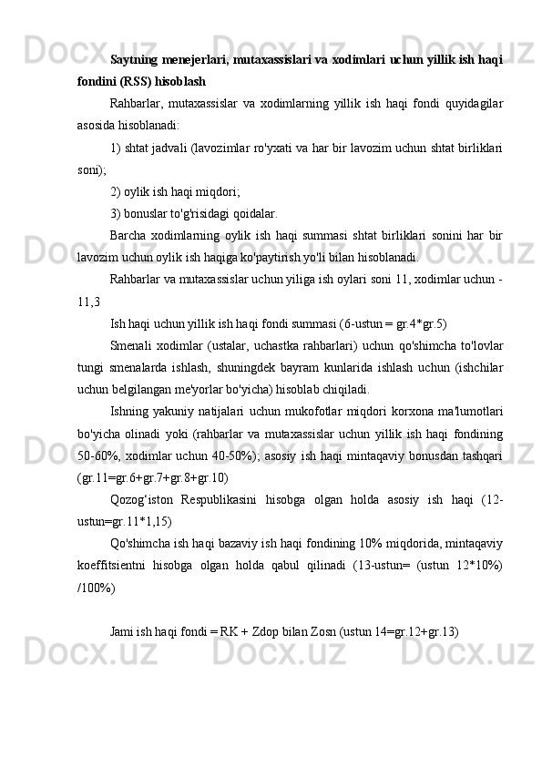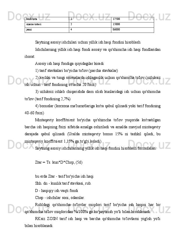 7.3 Saytning asosiy ishchilari uchun yillik ish haqi fondini hisoblash