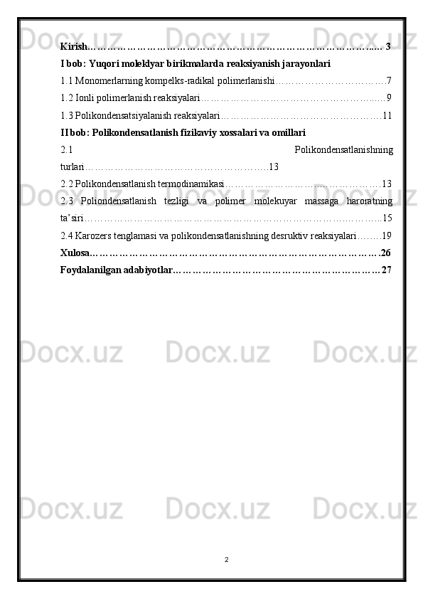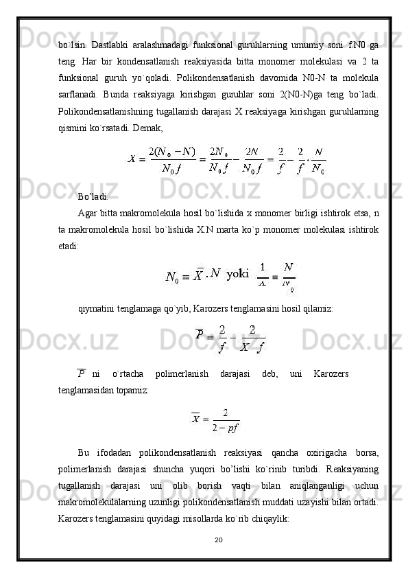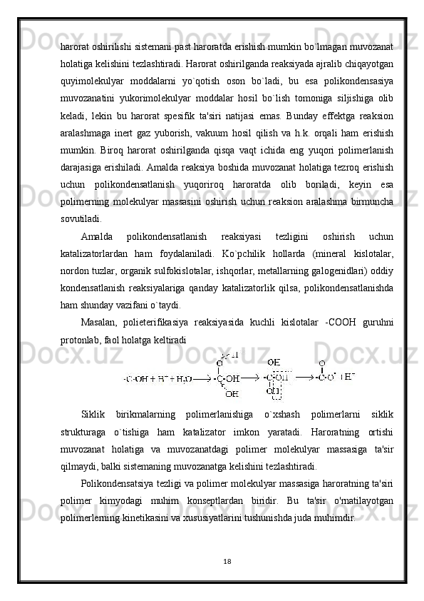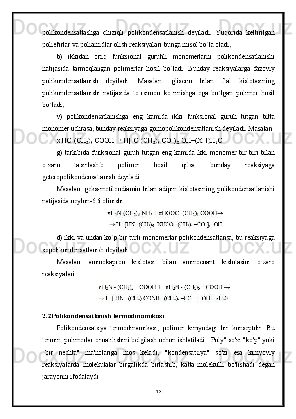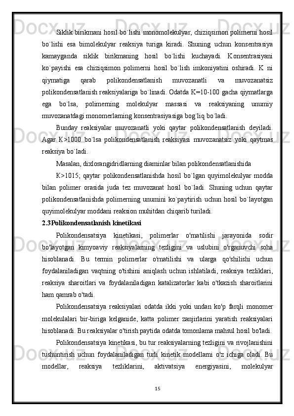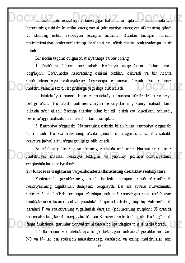 Polikondensatlanishda molekulyar massaga ta’sir etuvchi omillar