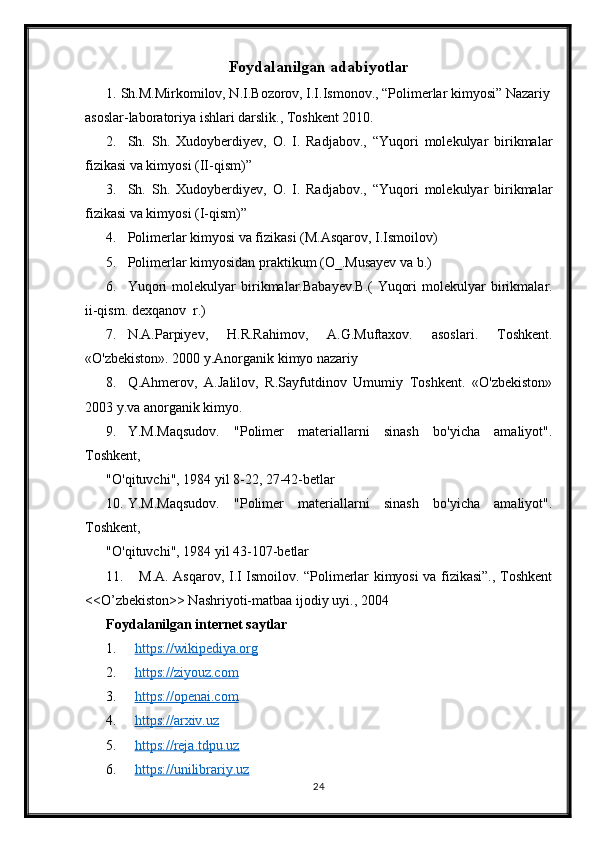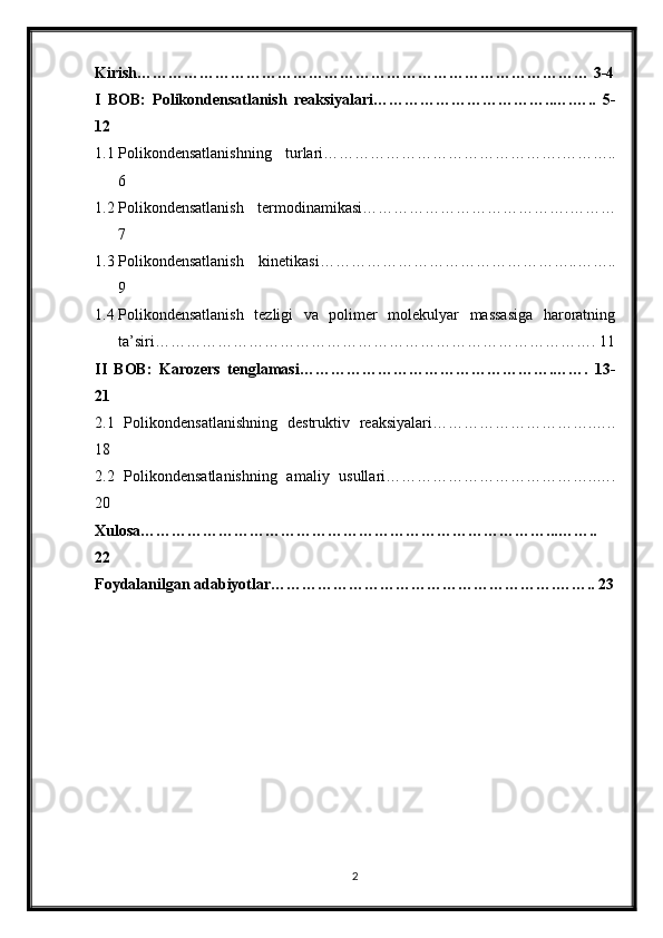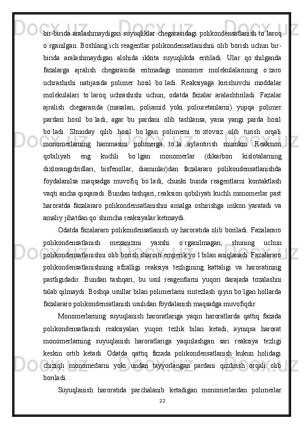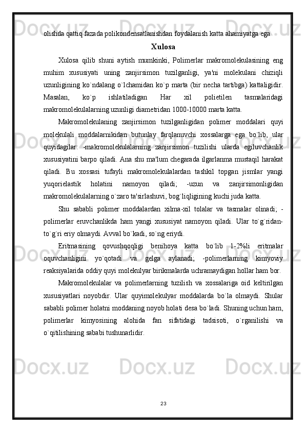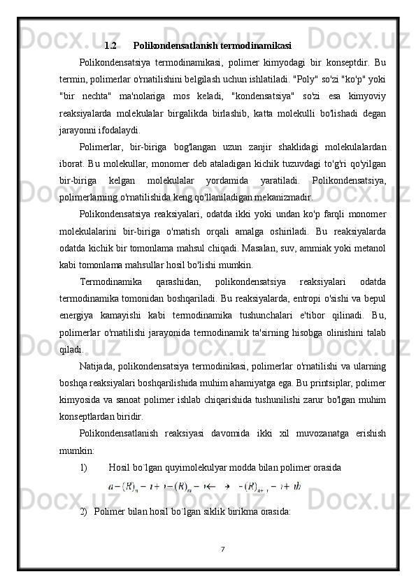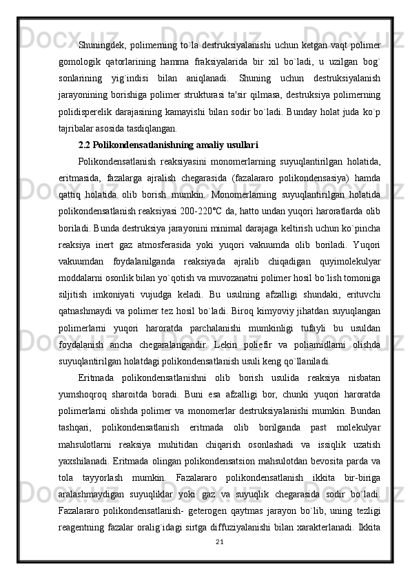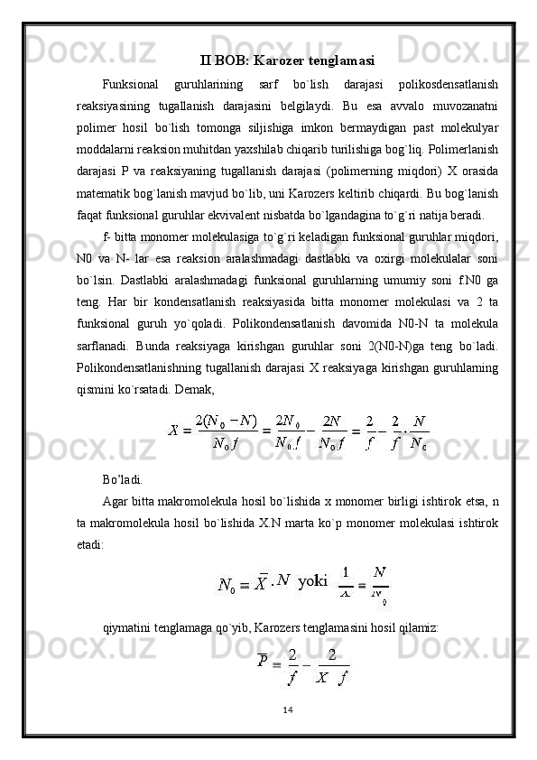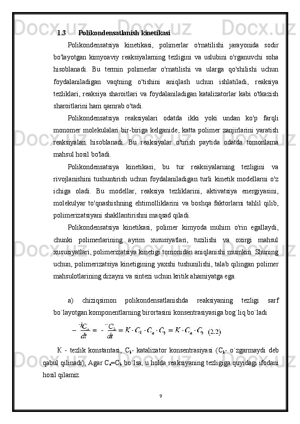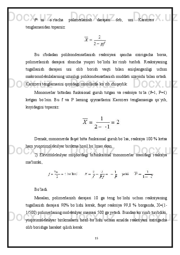 Polikondentsatlashtirish Korazers tenglamasi