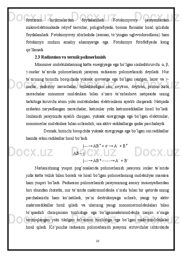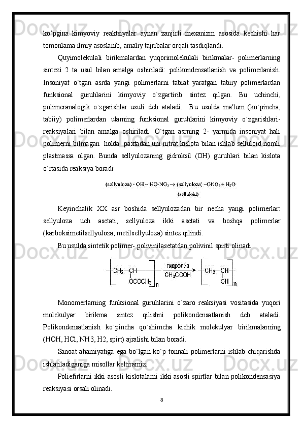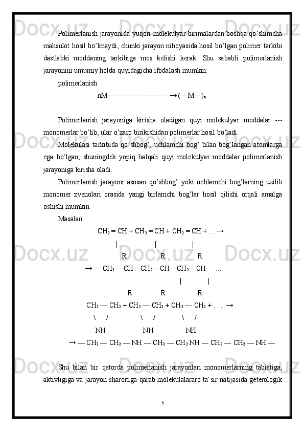 Polimerlar sintez qilishning asosiy usullariPolimerlar sintez qilishning asosiy usullariPolimerlar sintez qilishning asosiy usullari