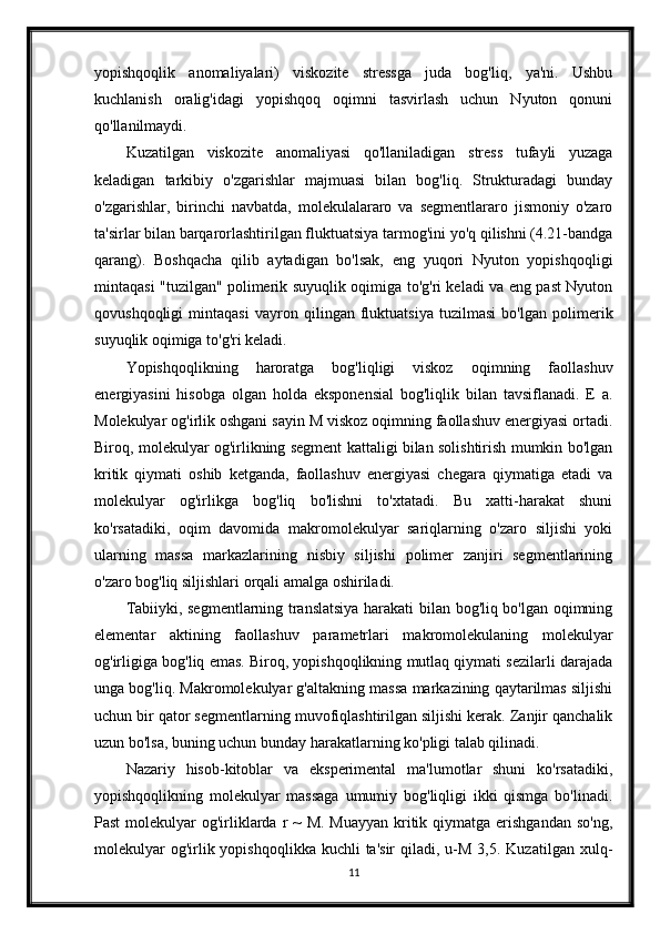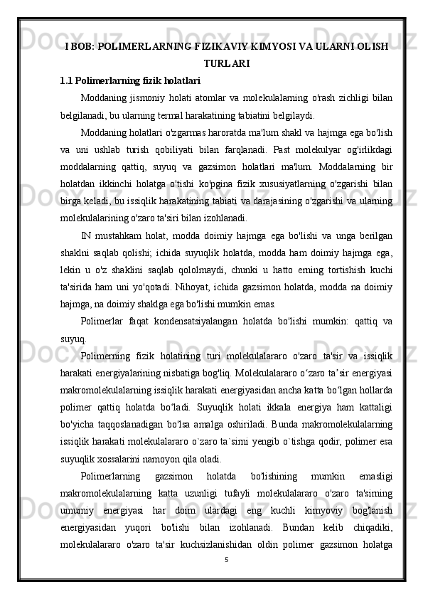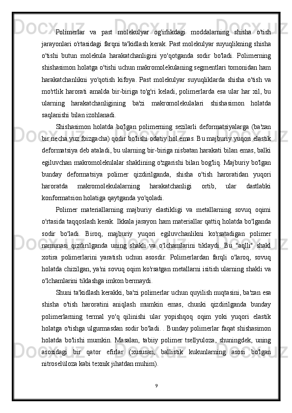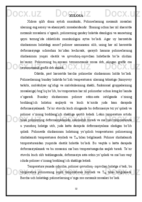 Polimerlarning fizikaviy-kimyosi. Polimerlarning bukiluvchanligi