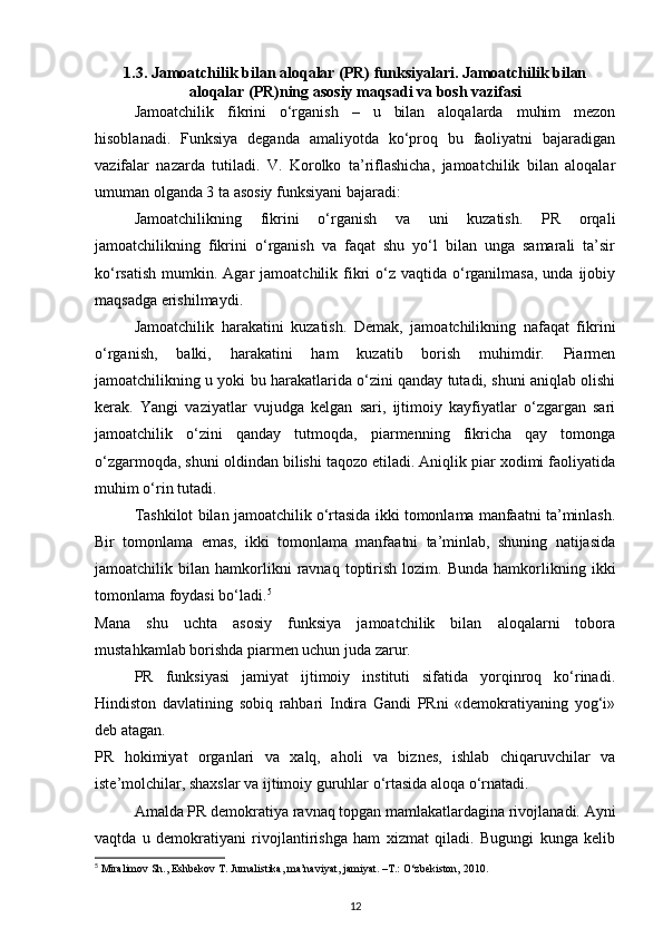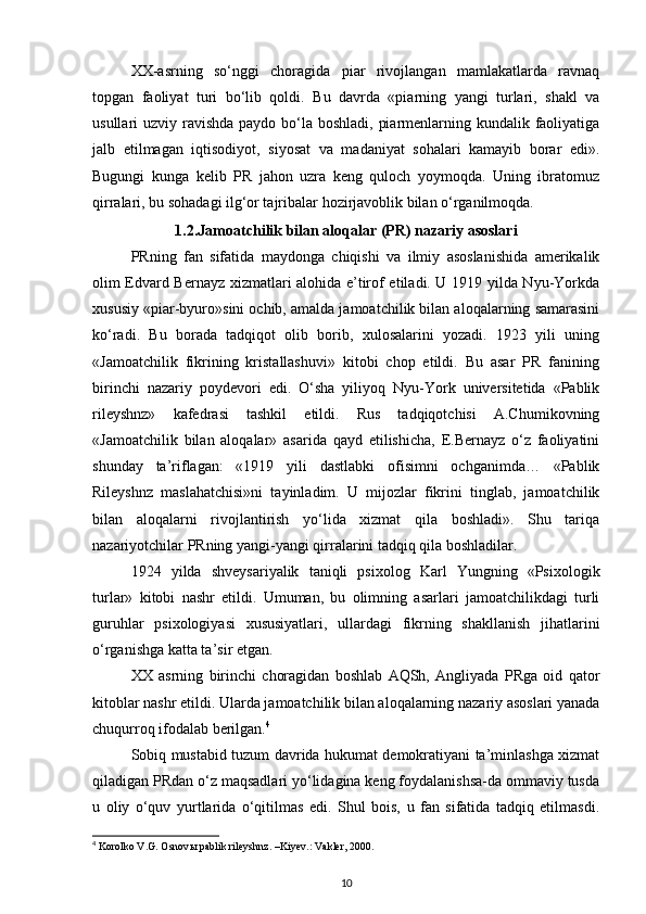 1.2. Jamoatchilik bilan aloqalar (PR) nazariy asoslari 10