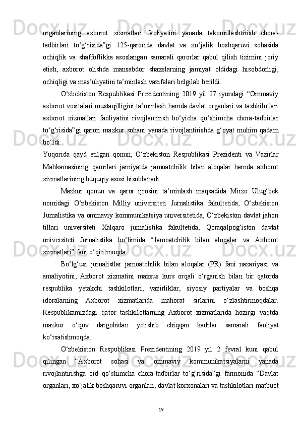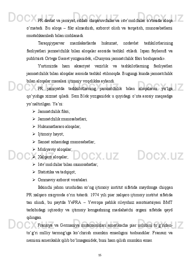 II BOB. Jamoatchilik bilan aloqalar va ularning ahamiyati 18