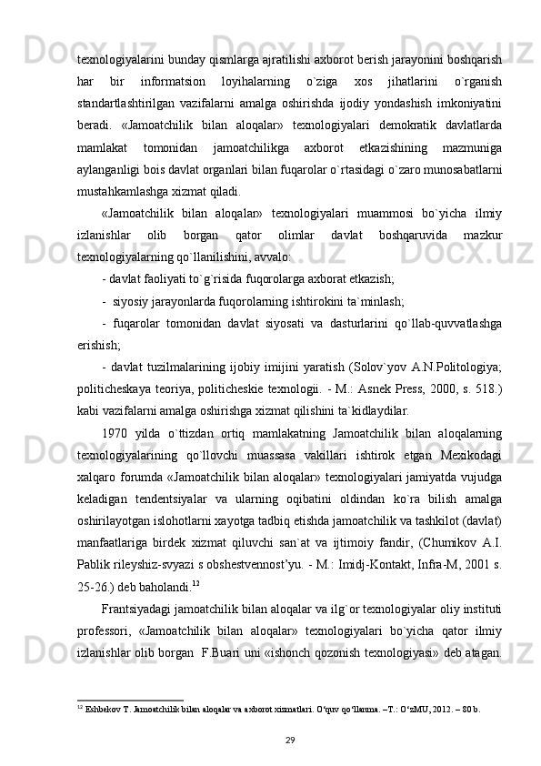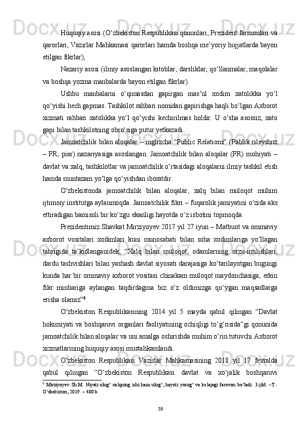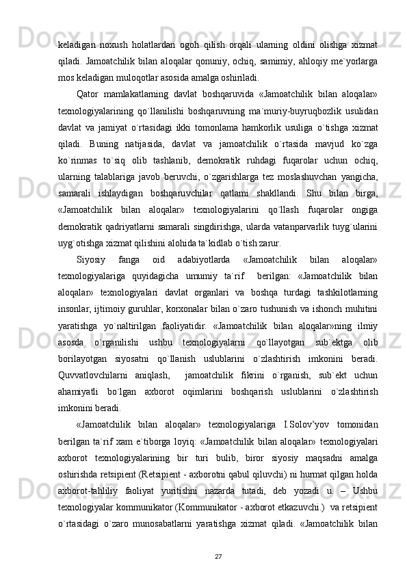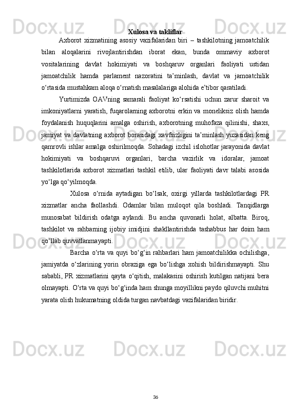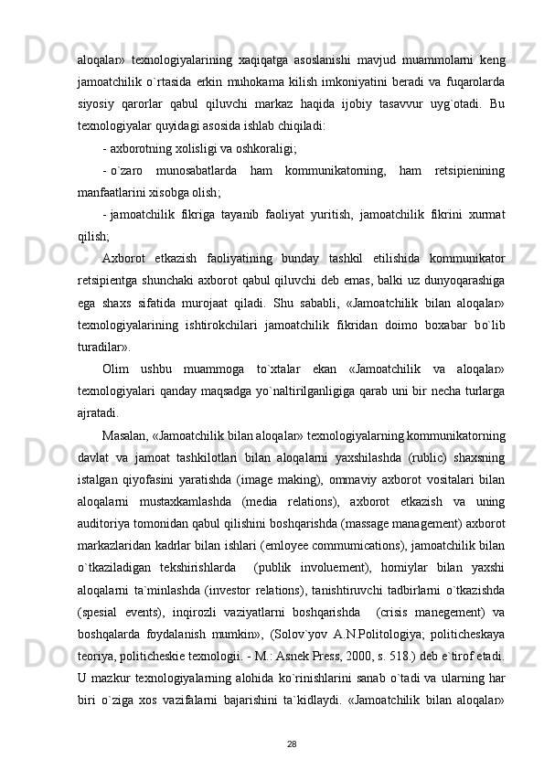 2.3. Milliy g‘oya targ‘ibotida “Jamoatchilik bilan aloqalar”. 26