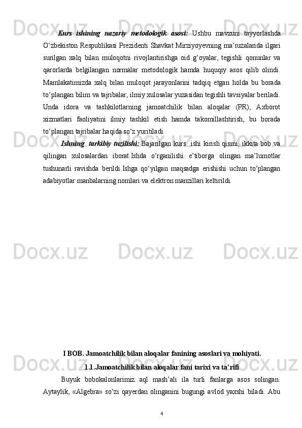 I BOB. Jamoatchilik bilan aloqalar fanining asoslari va mohiyati. 5