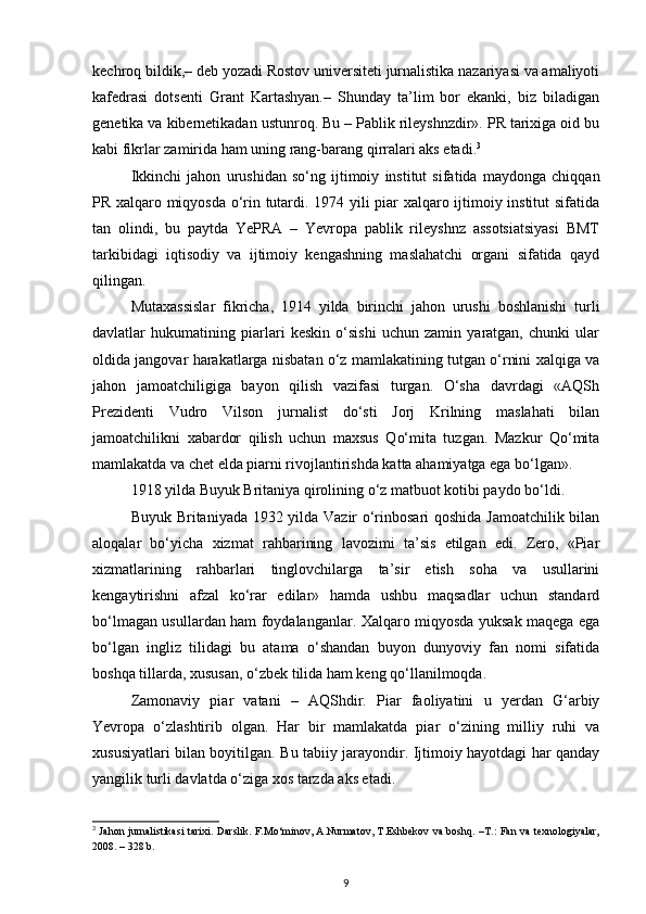 PR – jamoatchilik fikrini shakllantiruvchi fan sifatida
