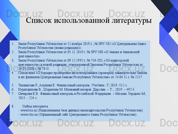 Правовые основы банковской деятельности и денежного обращения в Республике Узбекистан