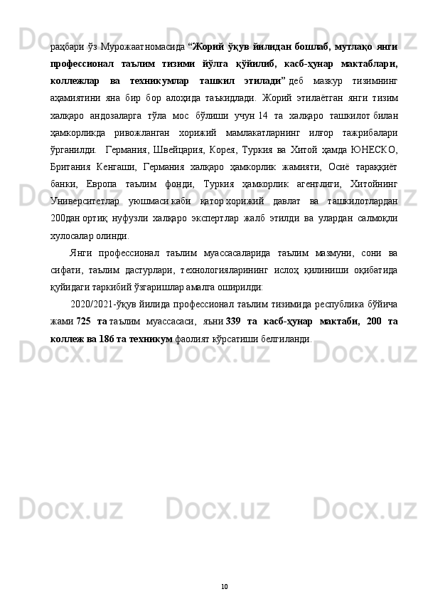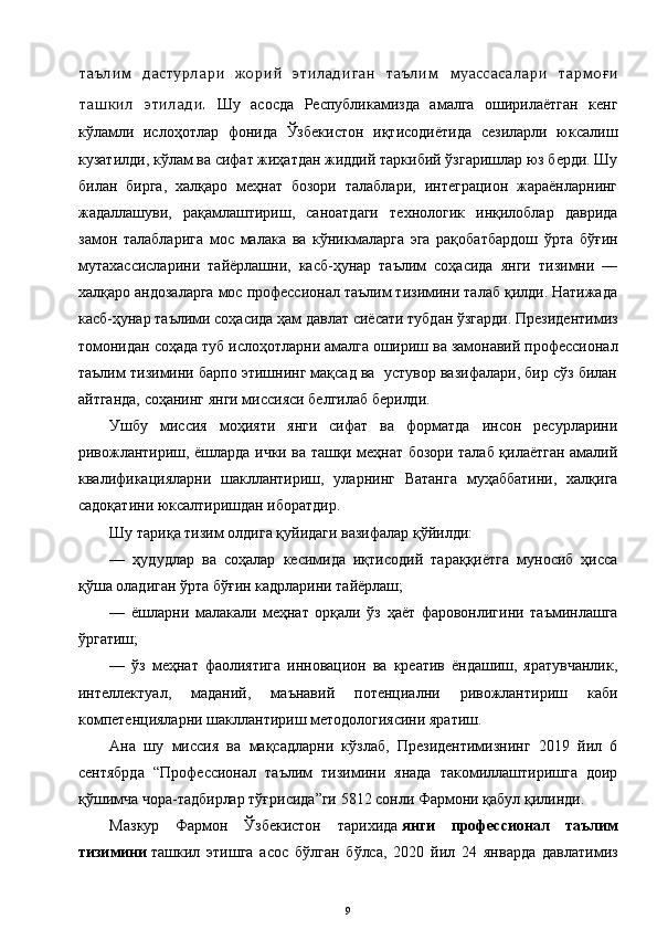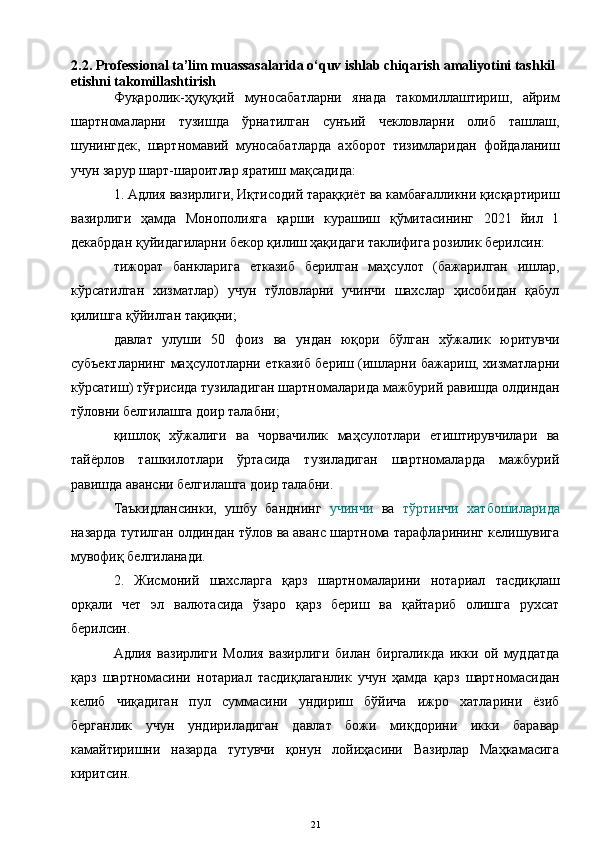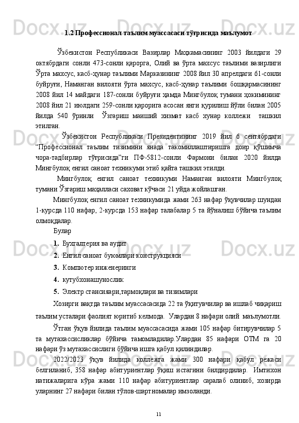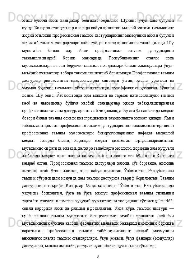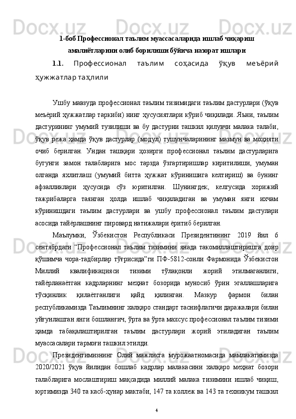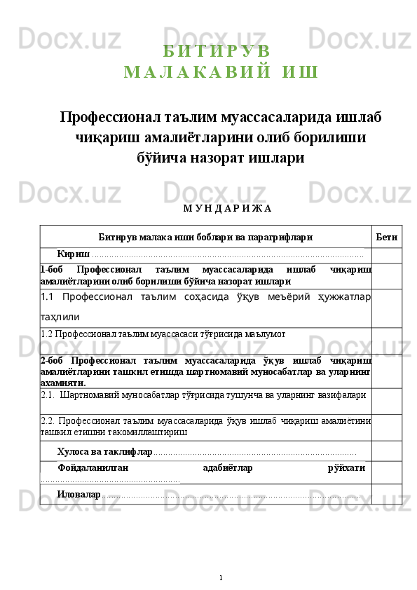 Профессионал таълим муассасаларида ишлаб чиқариш амалиётларини олиб борилиши бўйича назорат ишлари