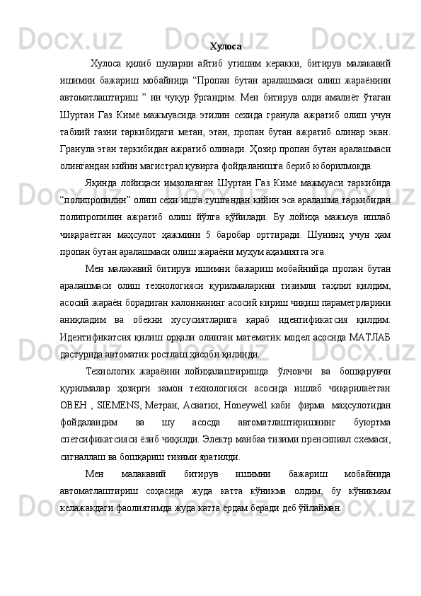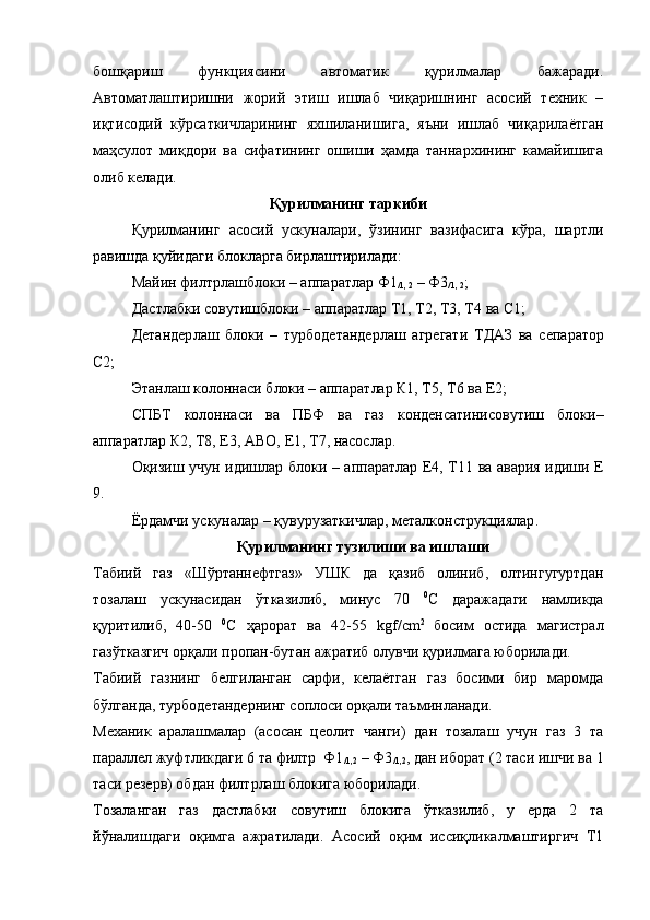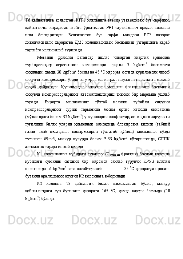 | 1.1. | Propan butan aralashmasini olish qurulmasi туғрисида умумий маълумот | ||