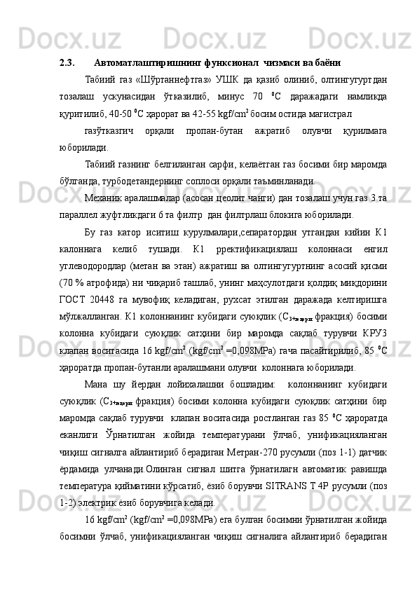 | 2.3. | Автоматлаштиришнинг функсионал чизмаси ва баёни | ||
