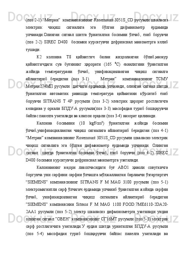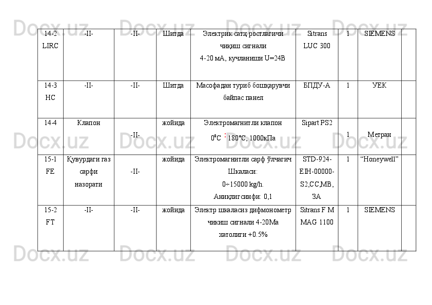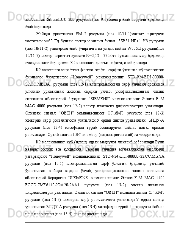 | II-БОБ. ТЕХНОЛОГИК ЖАРАЁННИ АВТОМАТЛАШТИРИШ ТИЗИМИНИ ЛОЙИҲАЛАШ | |||