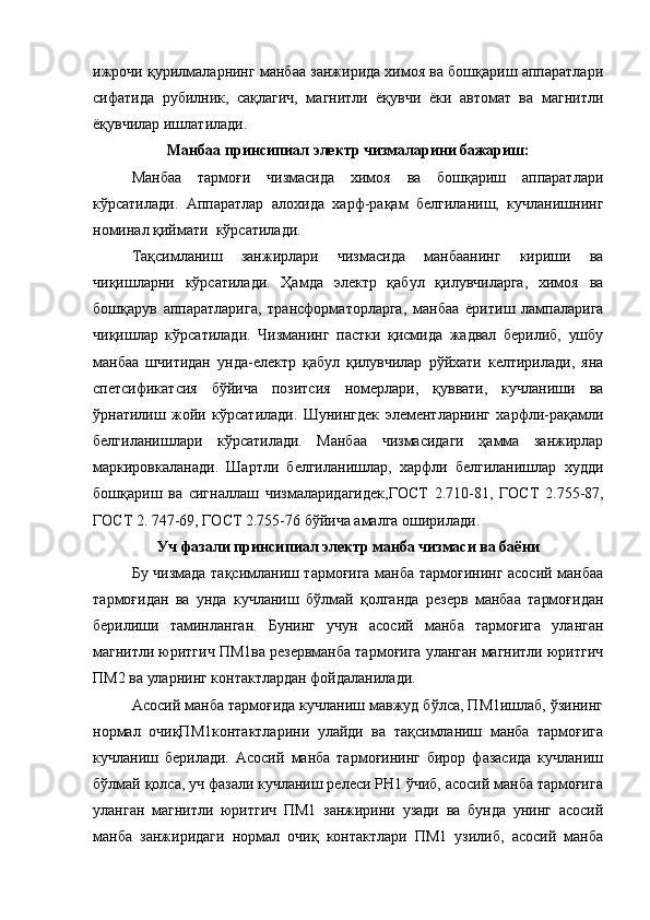 | 2.5. | Електр манбаа ва сигналлаш тизимларини лойиҳалаш принсипиал чизмаси ва баёни | ||