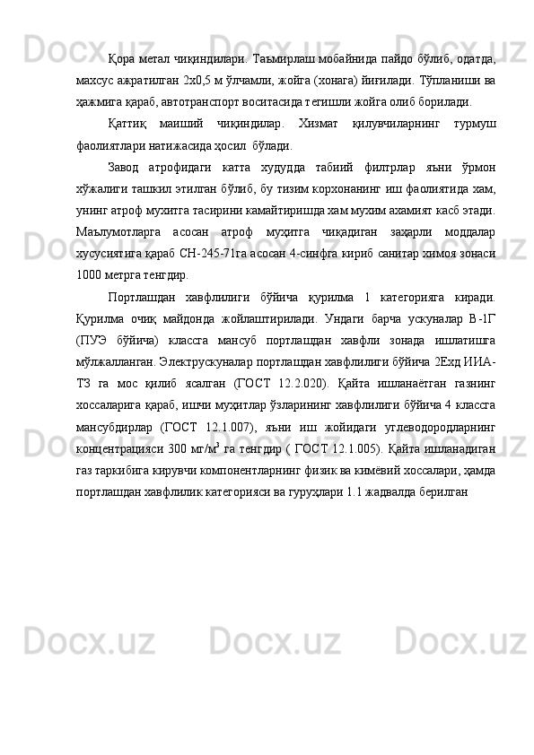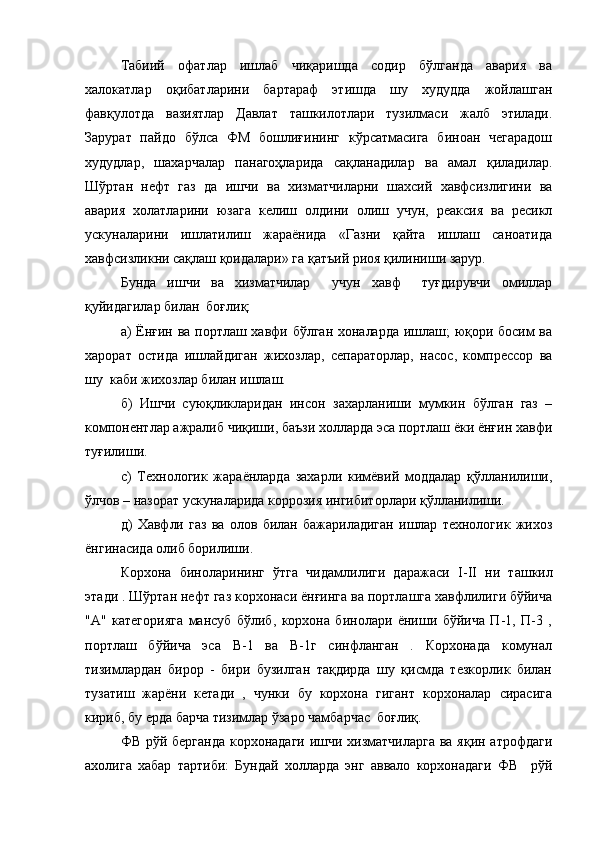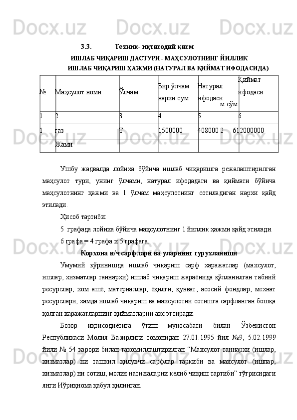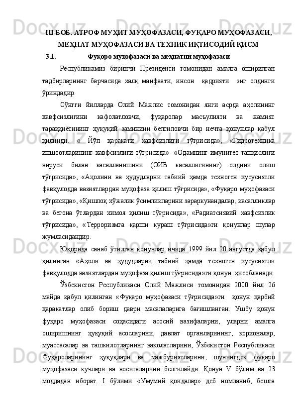 | III-БОБ. АТРОФ МУҲИТ МУҲОФАЗАСИ, ФУҚАРО МУҲОФАЗАСИ, МЕҲНАТ МУҲОФАЗАСИ ВА ТЕХНИК ИҚТИСОДИЙ ҚИСМ | |||