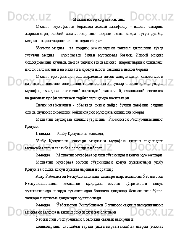 | 3.1. | Фуқоро муҳофазаси ва меҳнатни муҳофазаси | ||