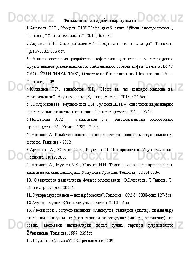 | I-БОБ., ТАНЛАНГАН ТЕХНОЛОГИЯ ТУҒРИСИДА УМУМИЙ МАЪЛУМОТ ВА ТЕХНОЛОГИК ЖАРАЁН ТАВФСИФИ | |||