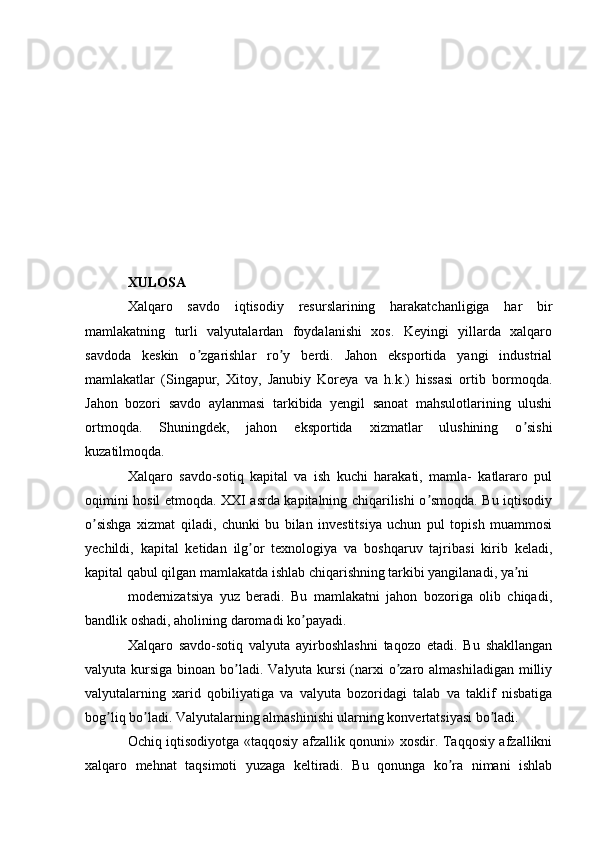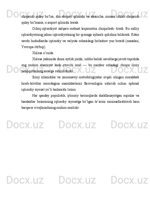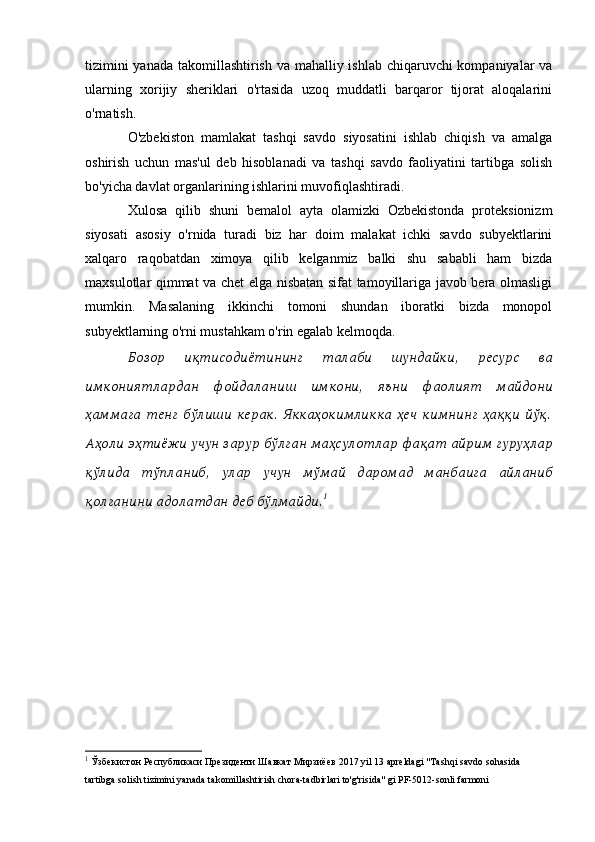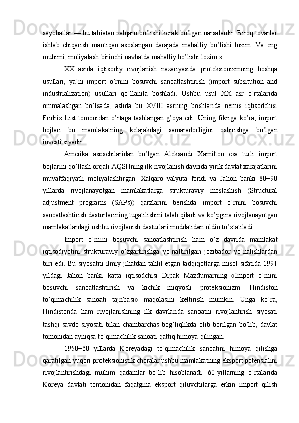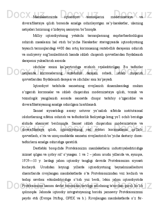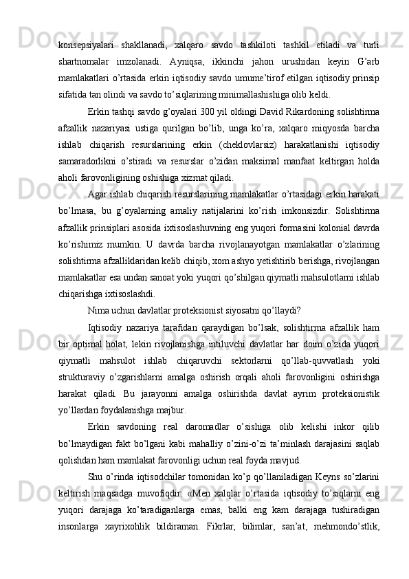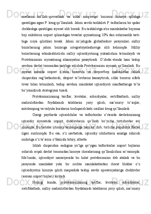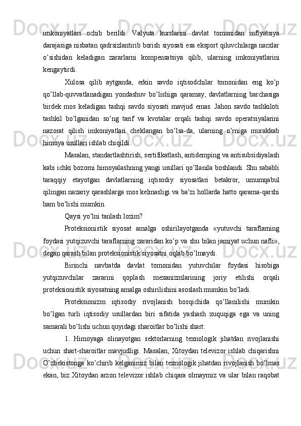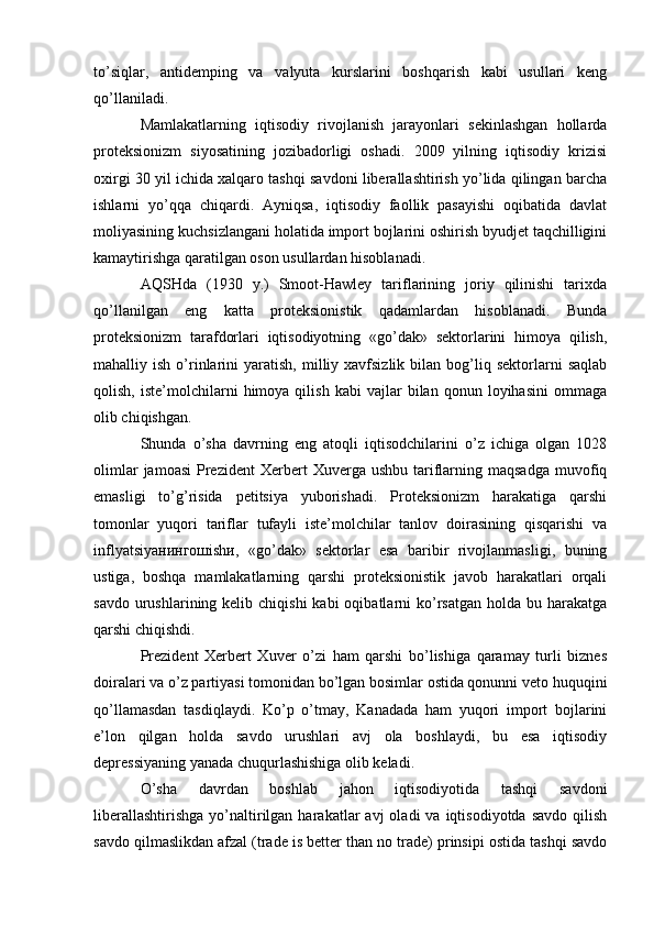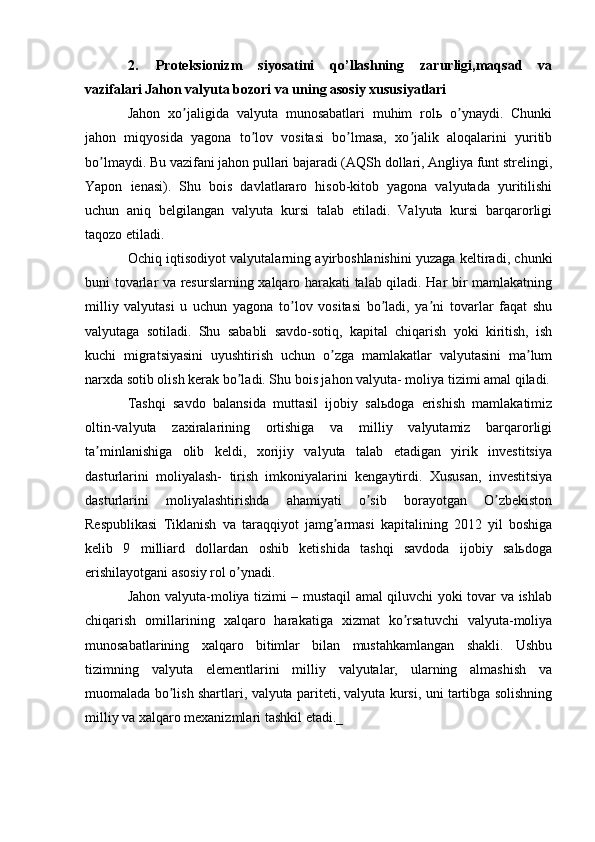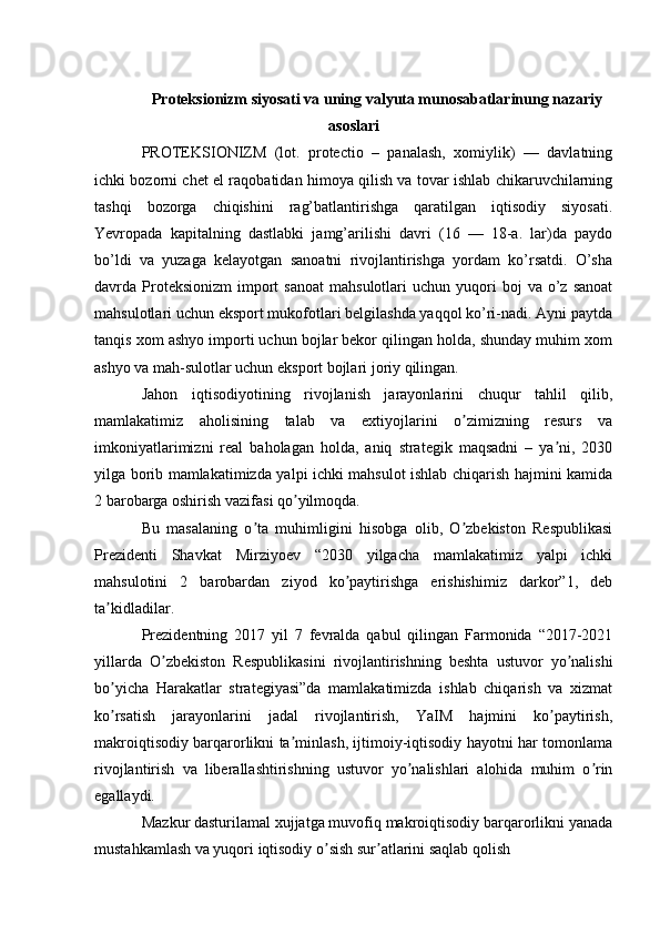 “Proteksionizm” siyosati va uning valyuta munosabatlaridagi o’rni