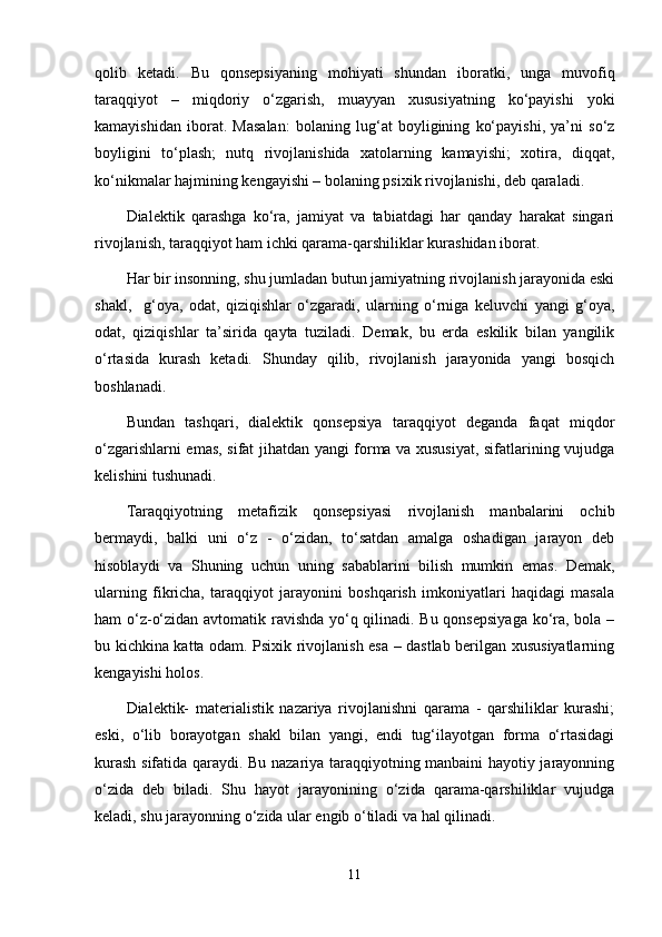 Bundan   tashqari,   dialektik   qonsepsiya   taraqqiyot   deganda   faqat   miqdor