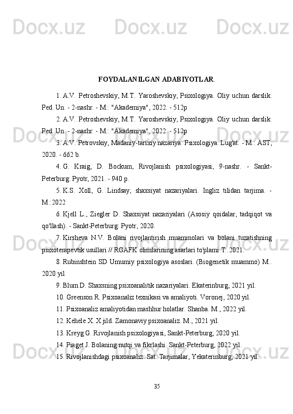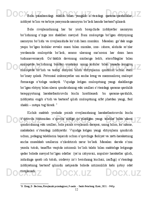 Noskova "Inson rivojlanish yoshi psixologiyasi".
