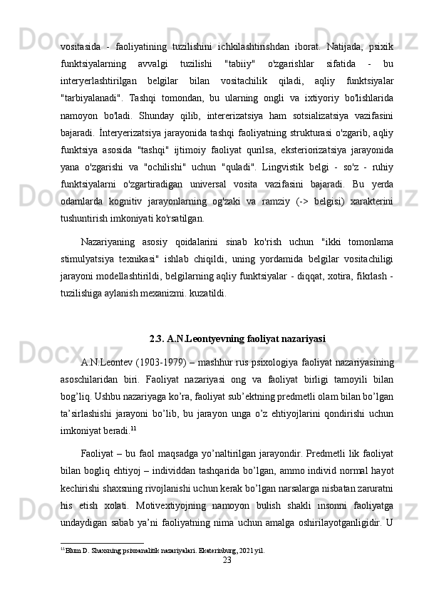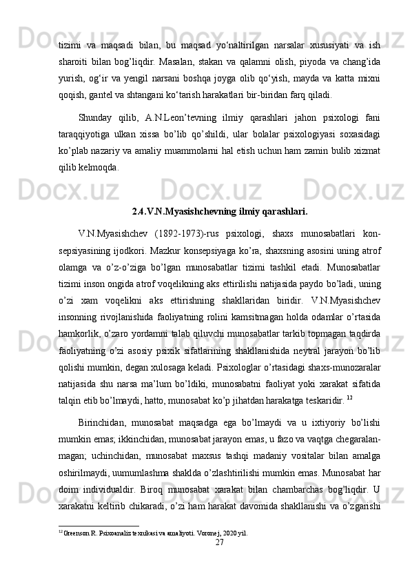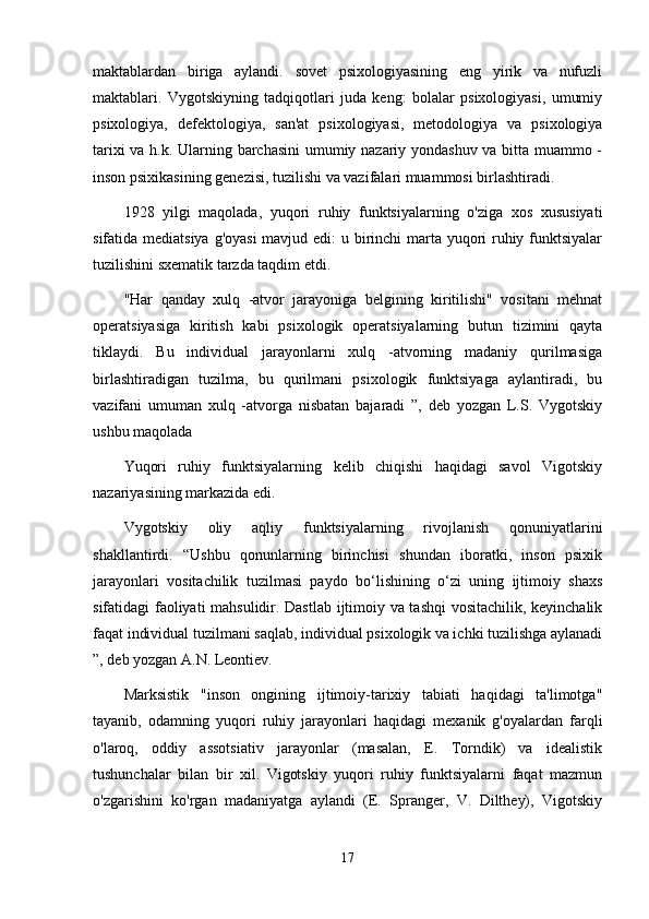 Shunday   qilib,   rus   psixologlari   -   L.S..Vigotskiy,   A.N.Leontev,