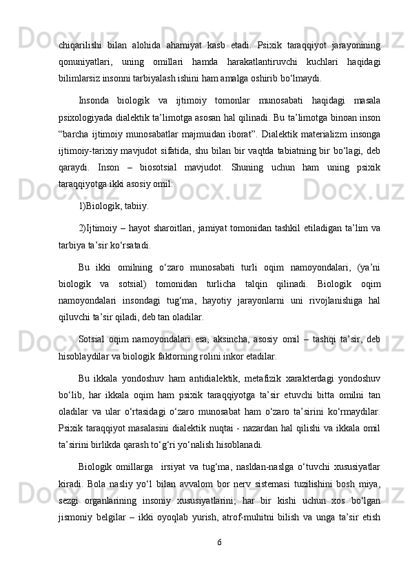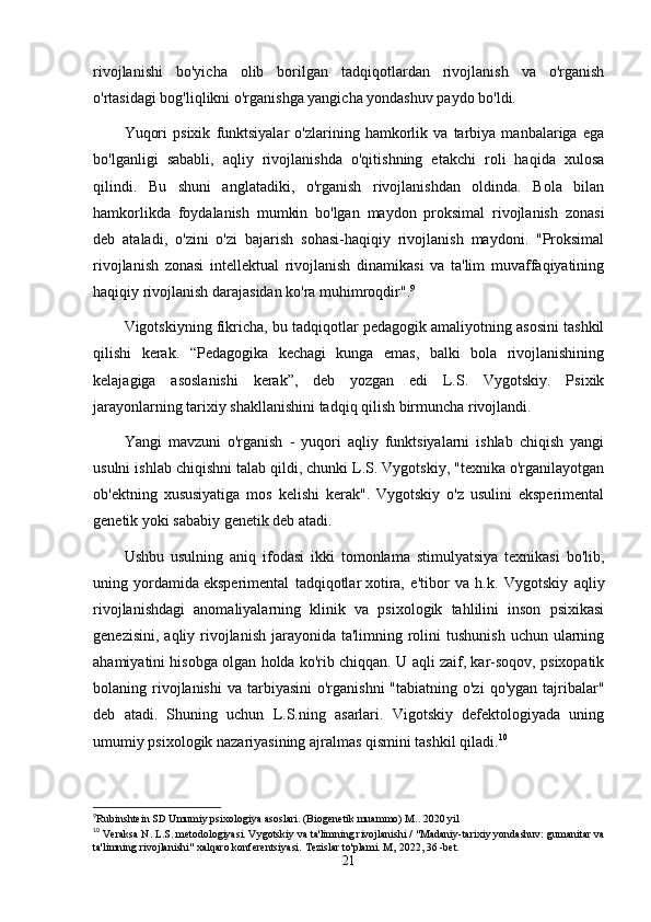 rivojlanishning   asosiy   printsipi   sifatida   qabul   qiladi.   Psixika   rivojlanishining