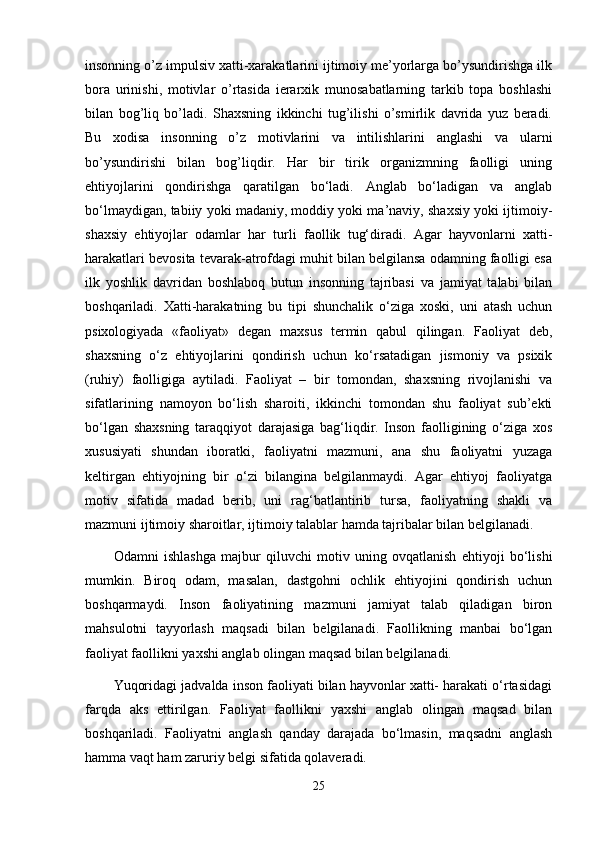 mohiyati   insonning   o'z   xatti   -harakatlari   va   psixikasini   o'zlashtirish   jarayonidan