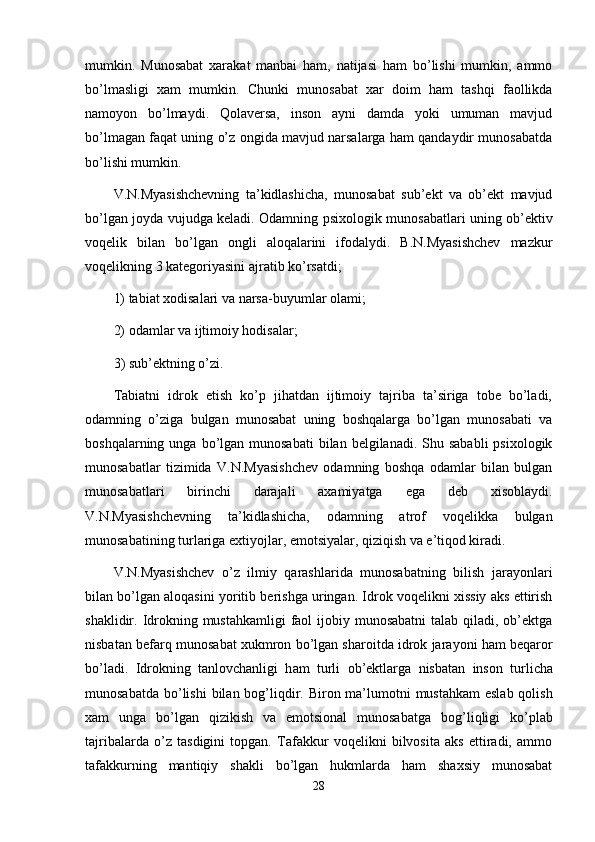 o’zi   xam   voqelikni   aks   etti rishning   shakllaridan   biridir.   V.N.Myasishchev