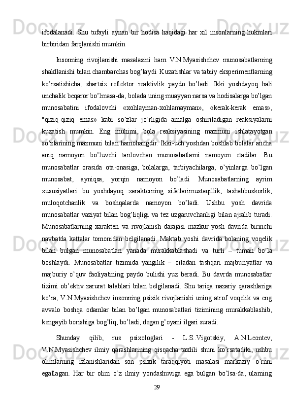 Insonning   rivojlanishi   masalasini   h am   V.N.Myasishchev   munosa batlarning