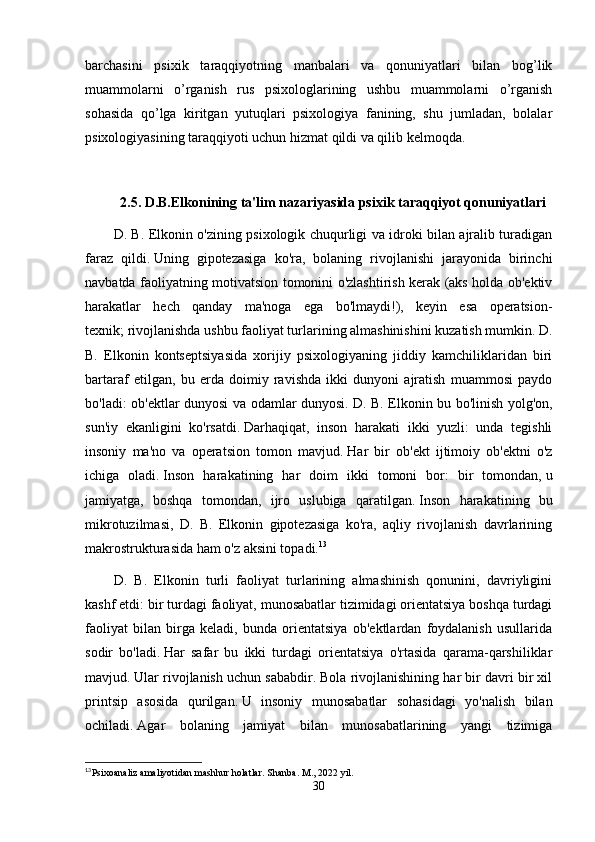 2.5. D.B.Elkonining ta'lim nazariyasida psixik taraqqiyot qonuniyatlari