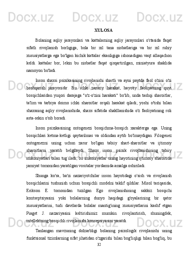 -   psixik   taraqqiyot   va   ta’limning   o’zaro   munosabati   asosiy   mezonlarini