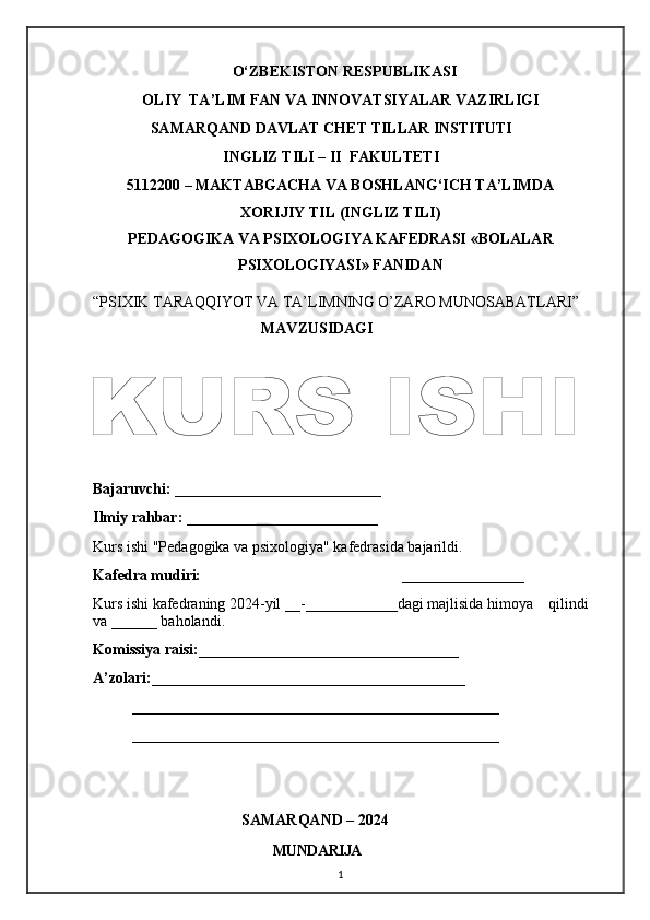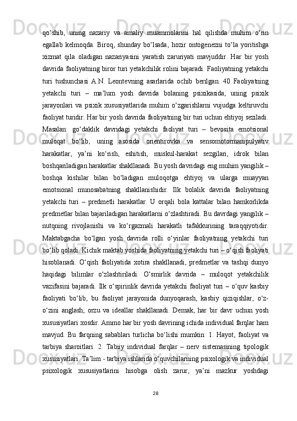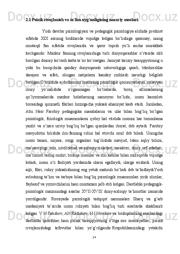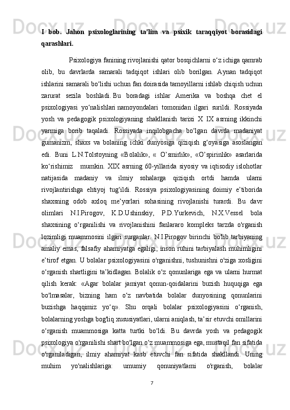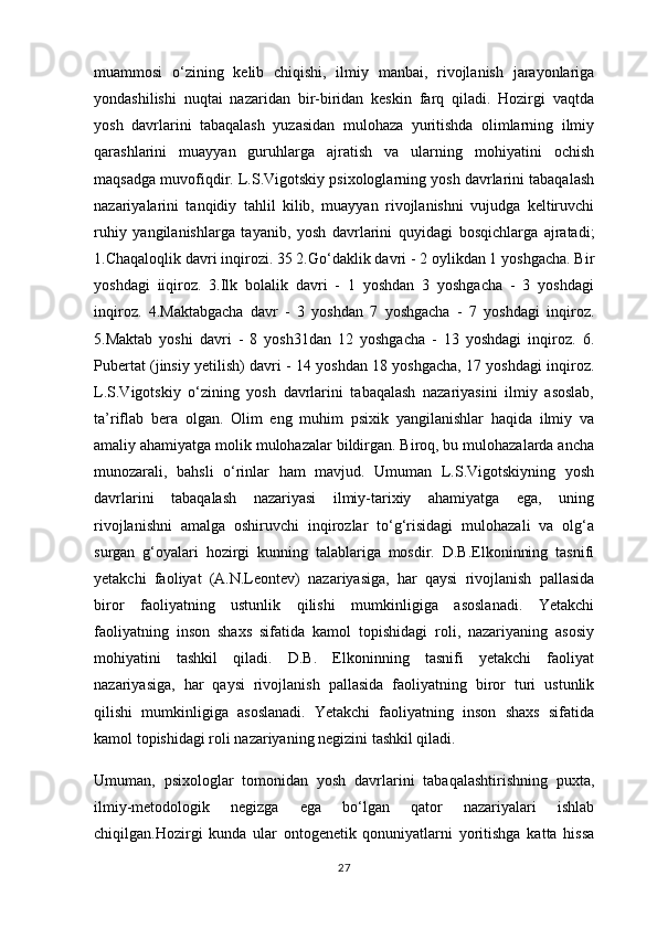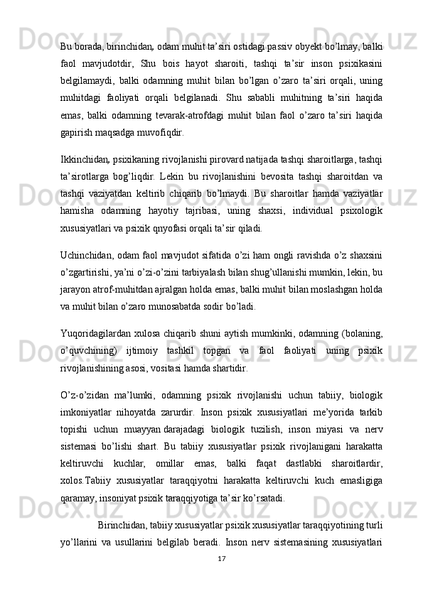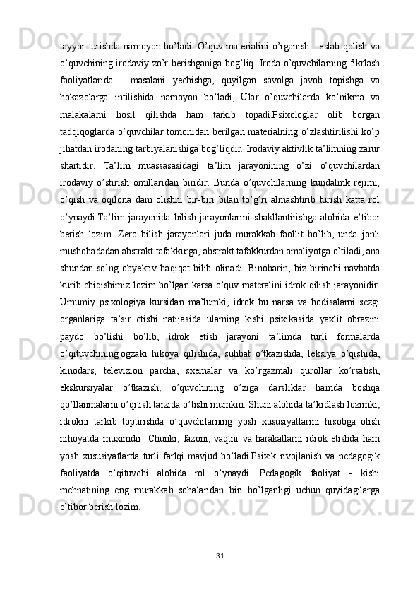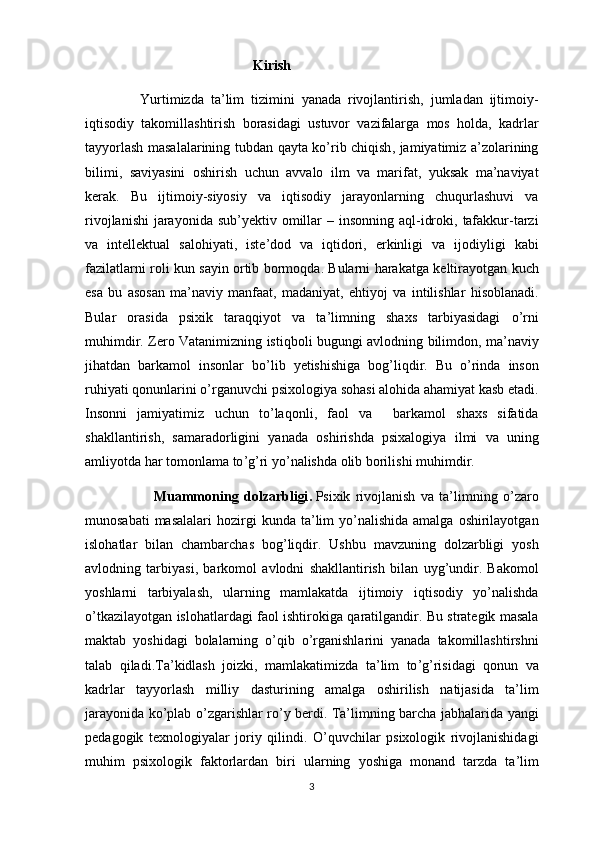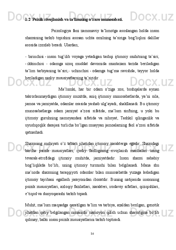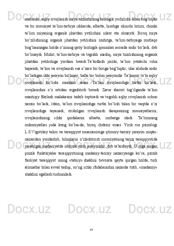 Psixik taraqqiyot va ta’limning o’zaro munosabatlari
