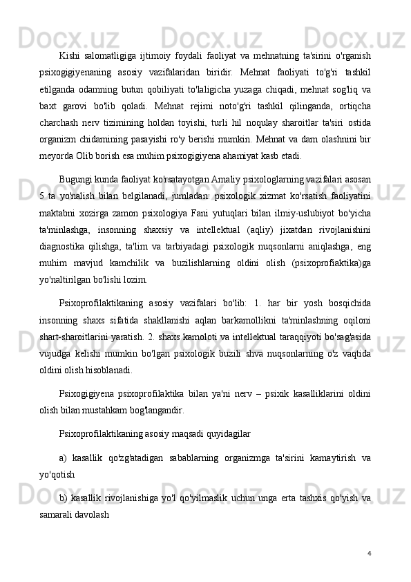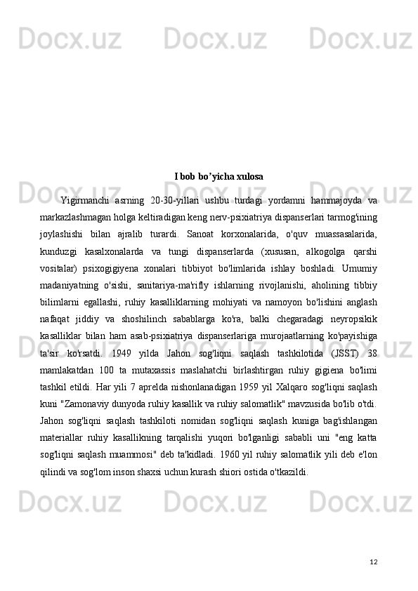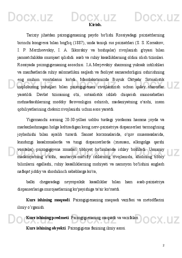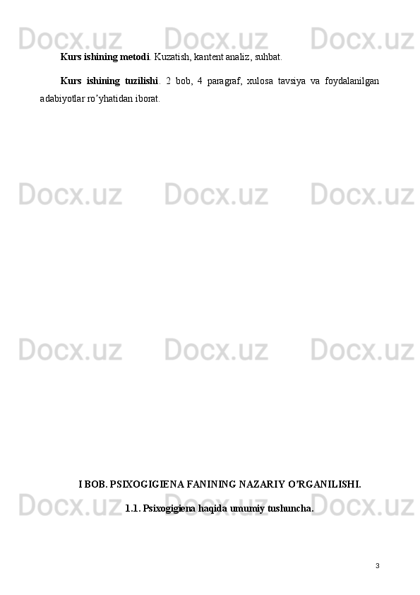 I BOB. PSIXOGIGIENA FANINING NAZARIY OʼRGANILISHI.