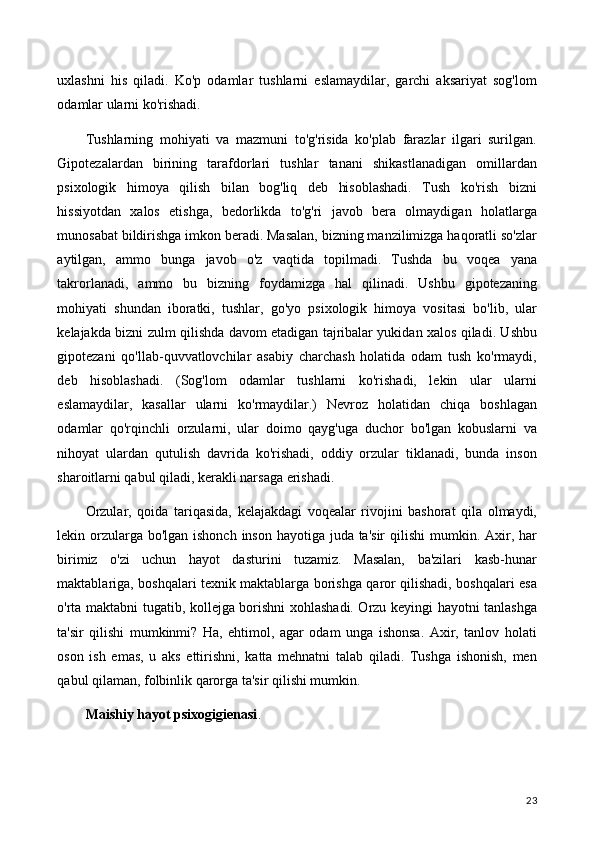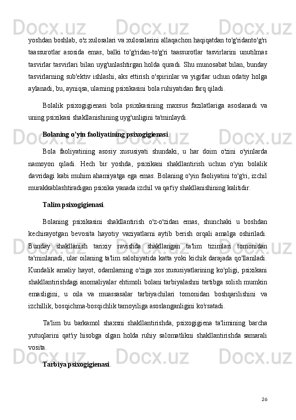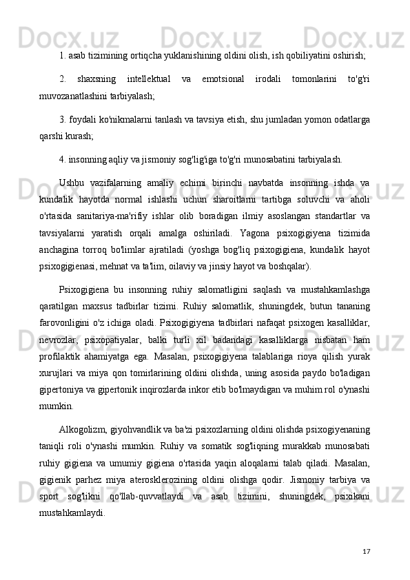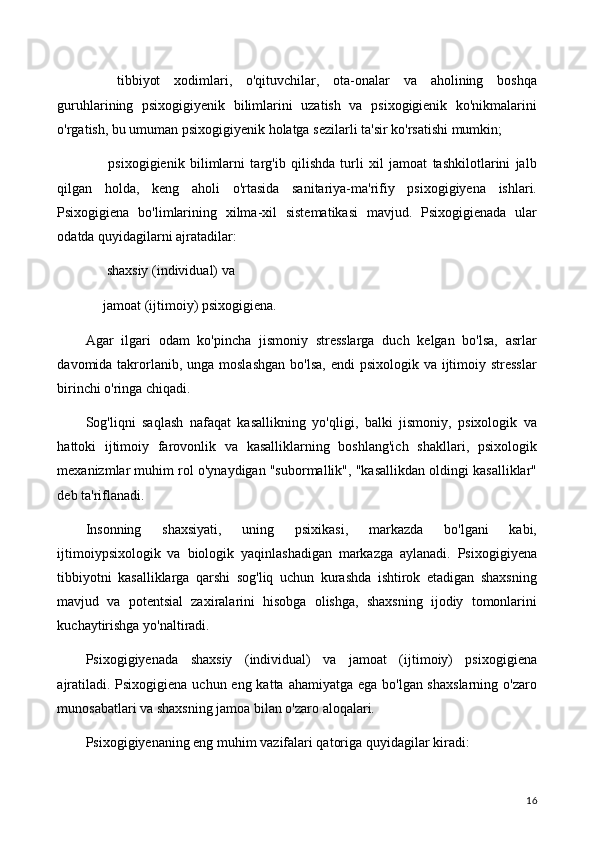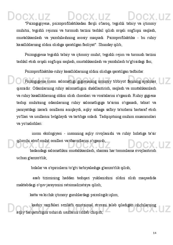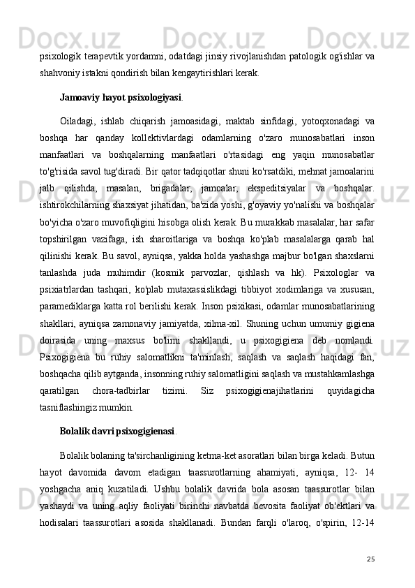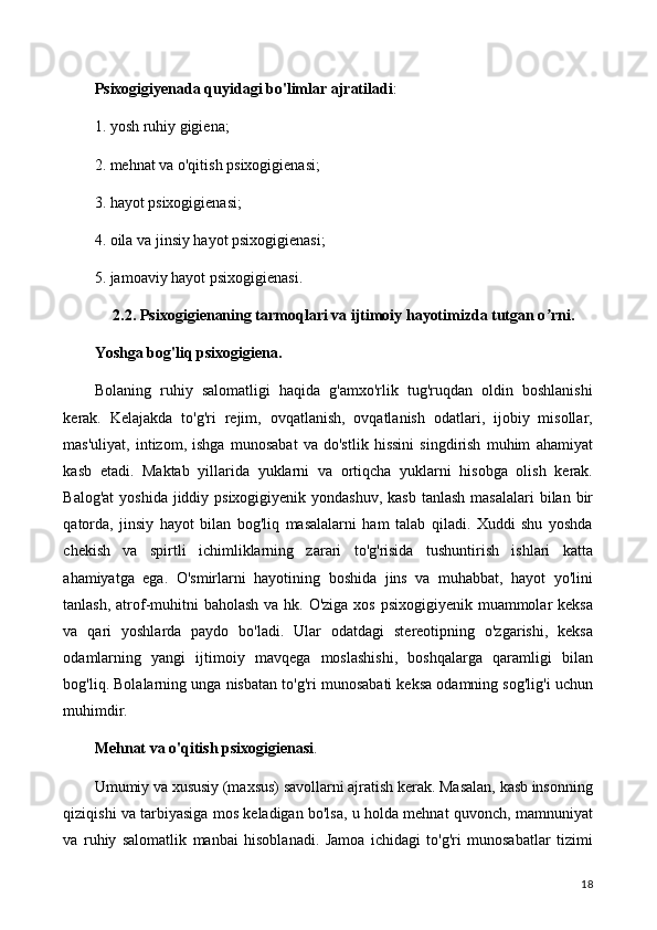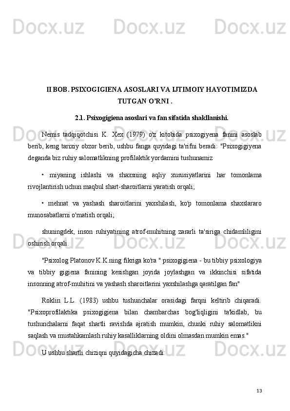 II BOB. PSIXOGIGIENA ASOSLARI VA IJTIMOIY HAYOTIMIZDA TUTGAN OʼRNI .