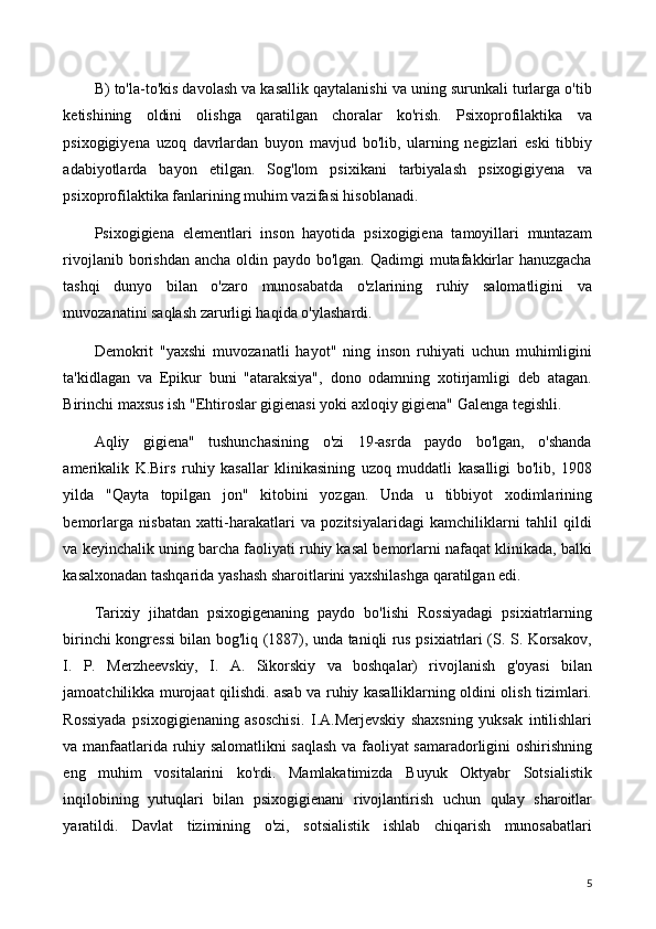 2.1. Psixogigiena asoslari va fan sifatida shakllanishi.
