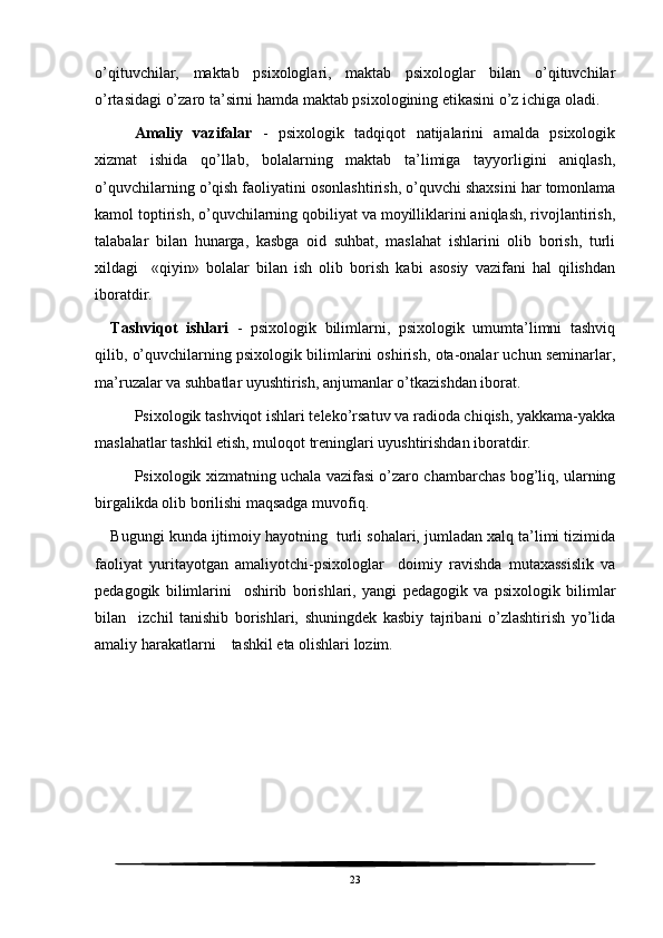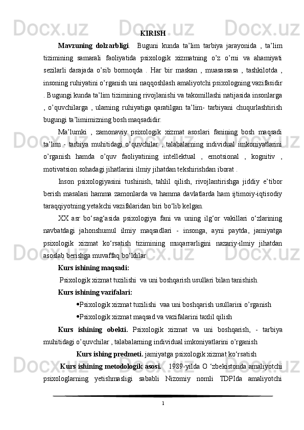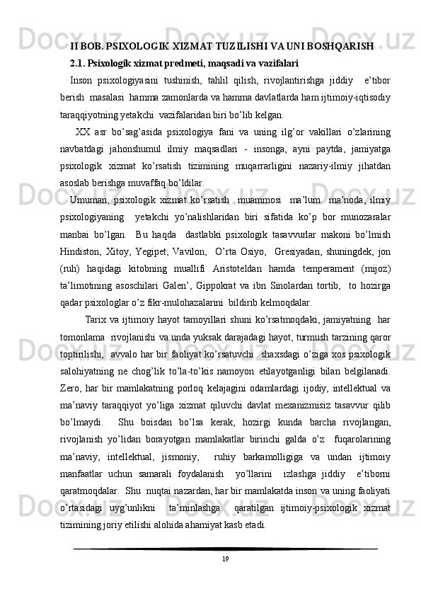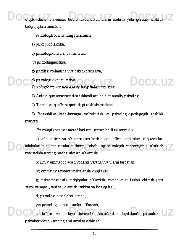 kurs ishi Psixologik xizmat tuzilishi va uni boshqarish