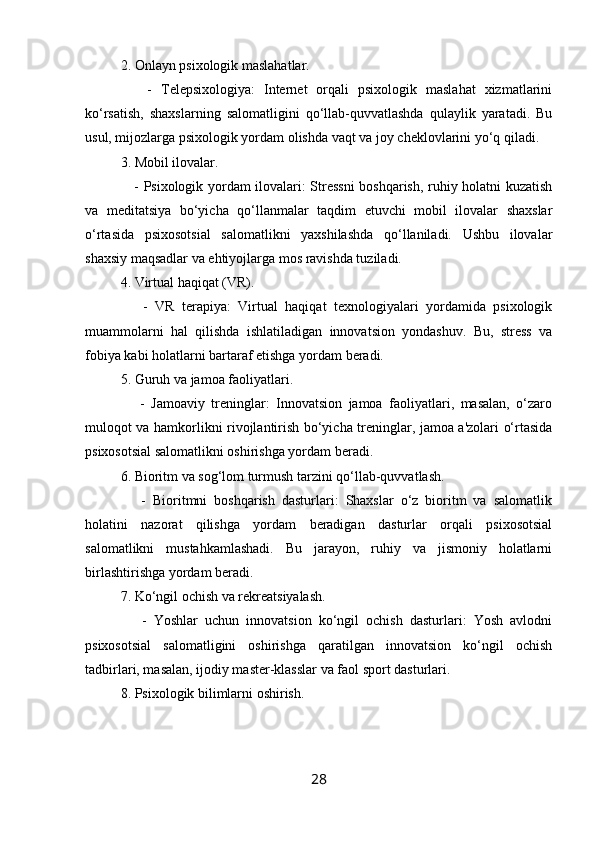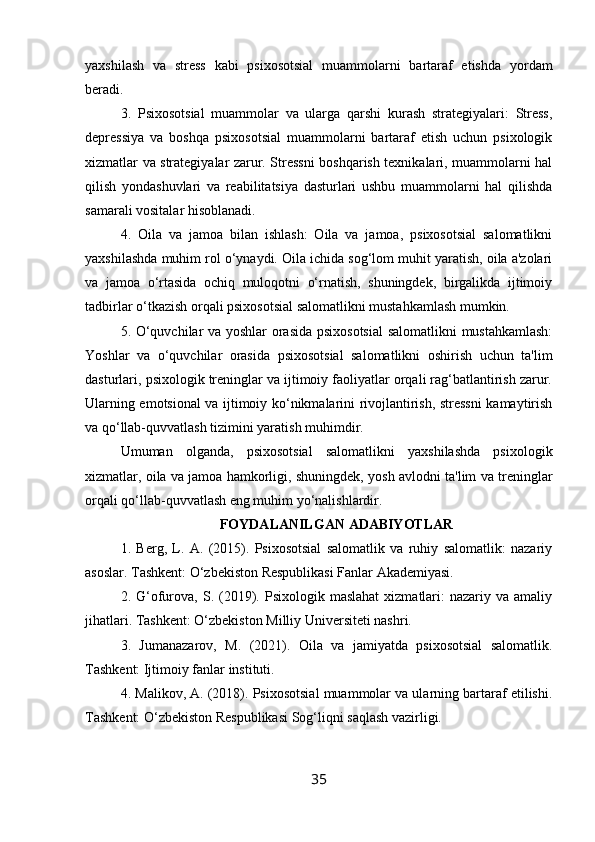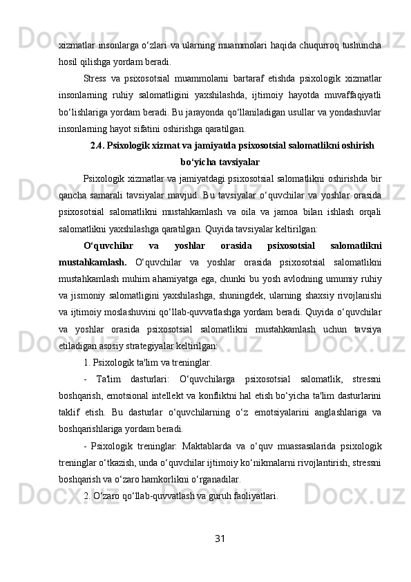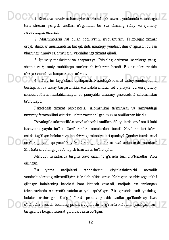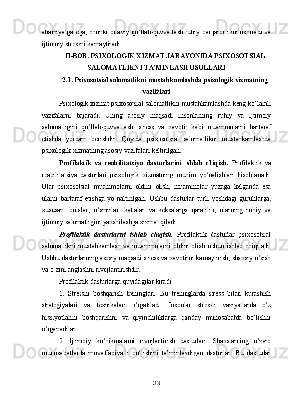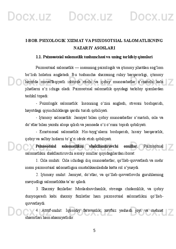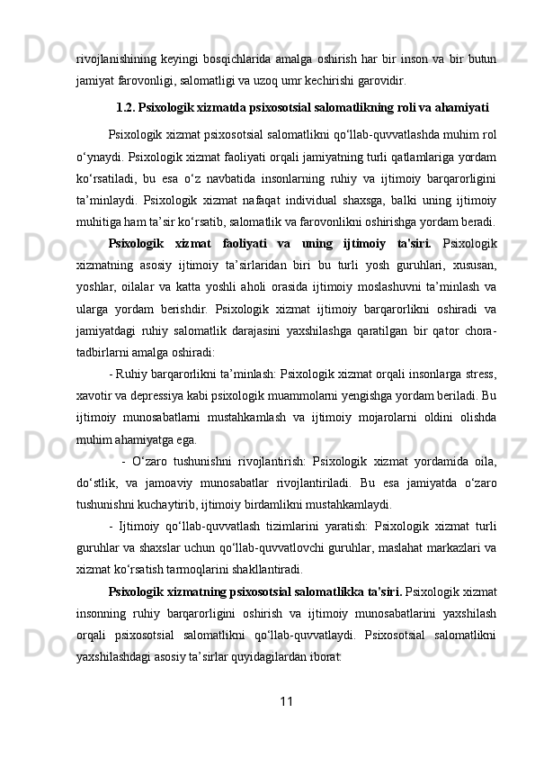 Psixologik xizmatda psixosotsial salomatlikning tutgan o‘rni