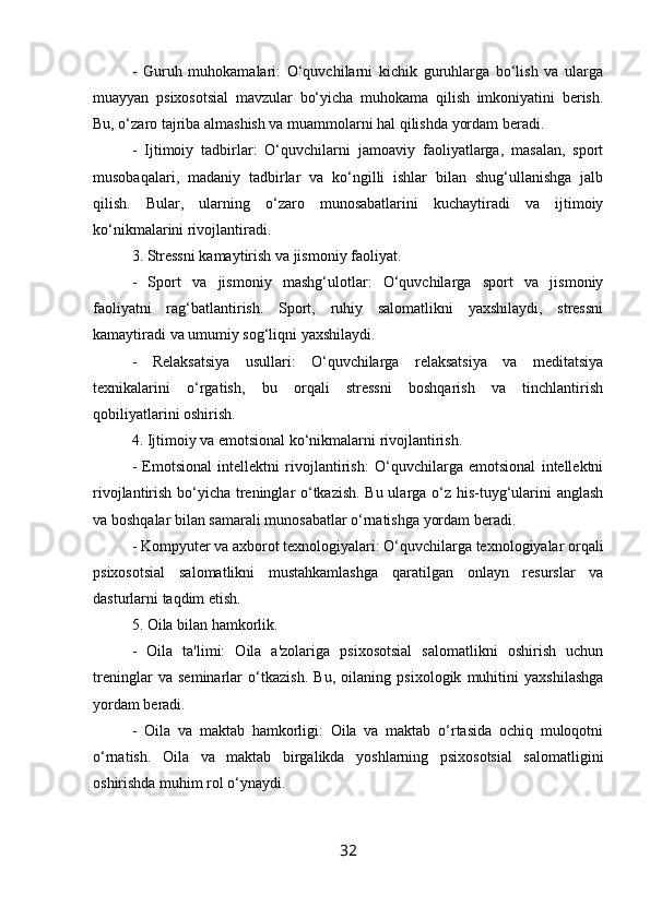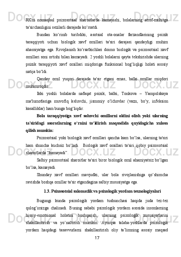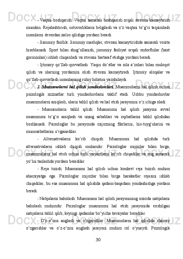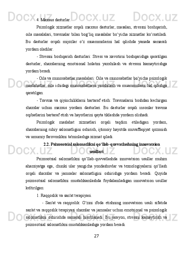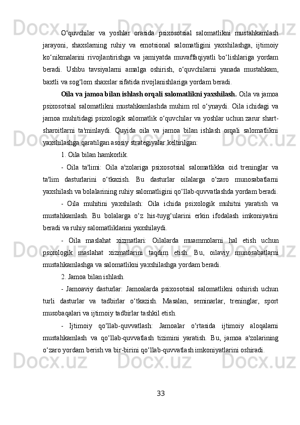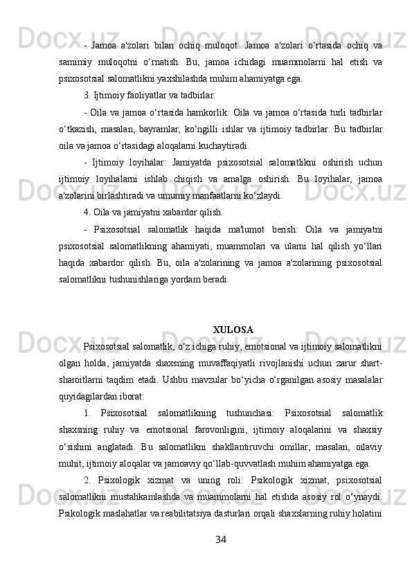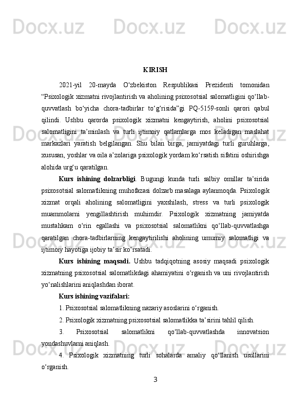 Psixologik xizmatda psixosotsial salomatlikning tutgan o‘rni