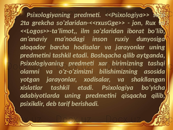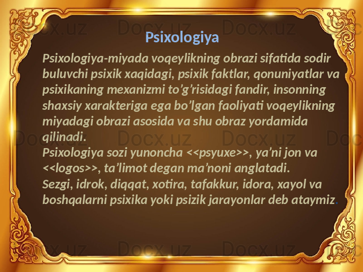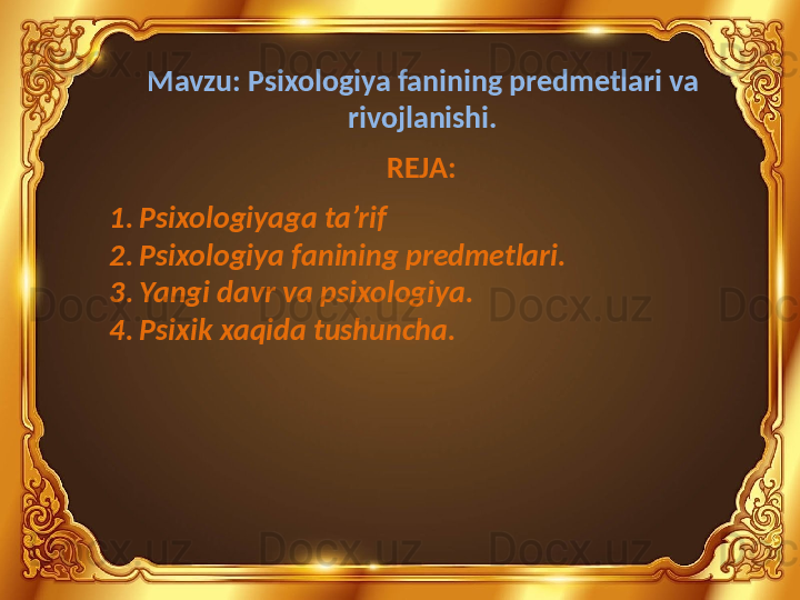 Bakalavr va magistrlar uchun . Umumiy psixologiya fanidan “Psixologiya fanining predmetlari va rivojlanishi.” mavzusida taqdimot.