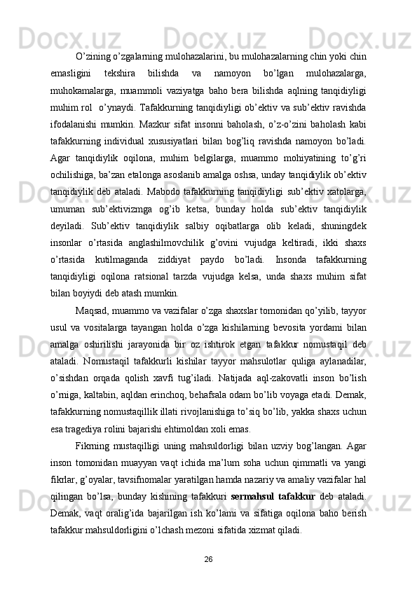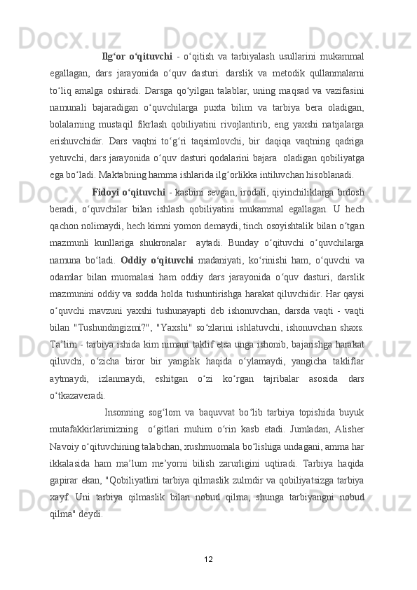 Sifatni qadirlaganlar uchun !