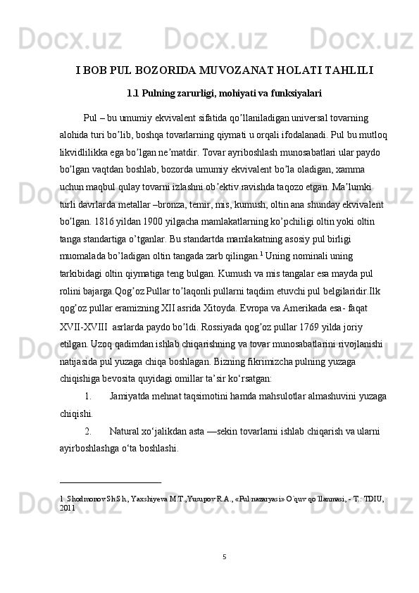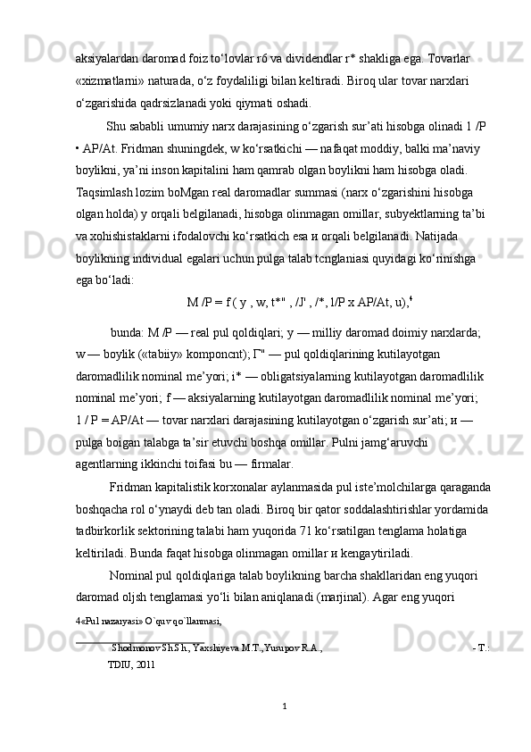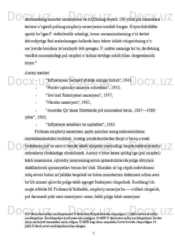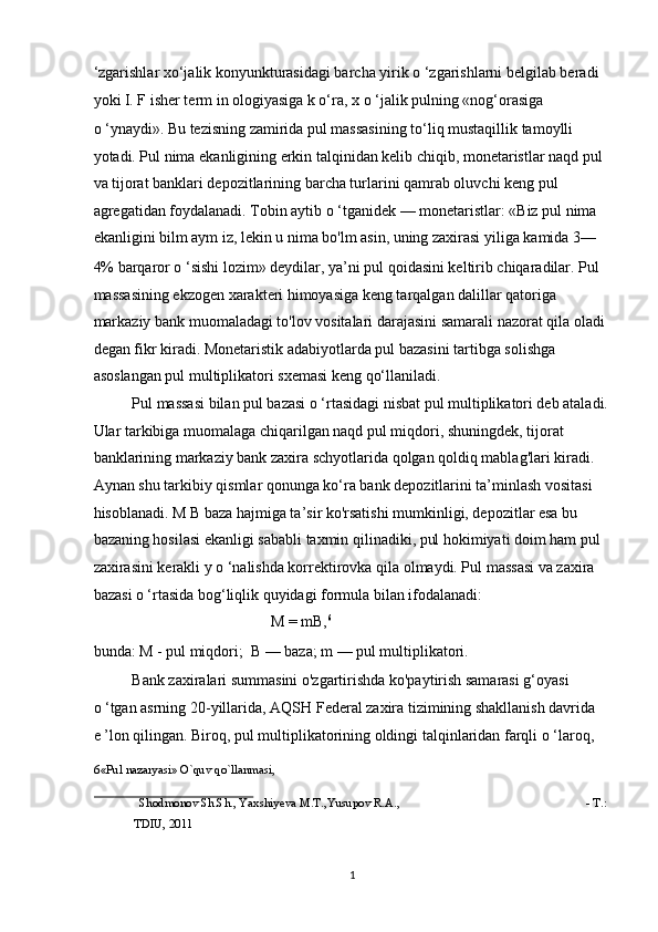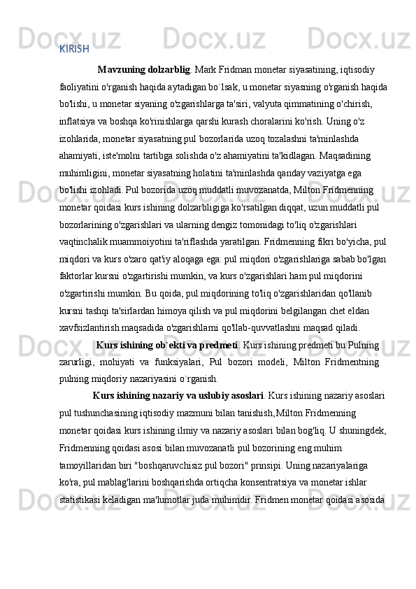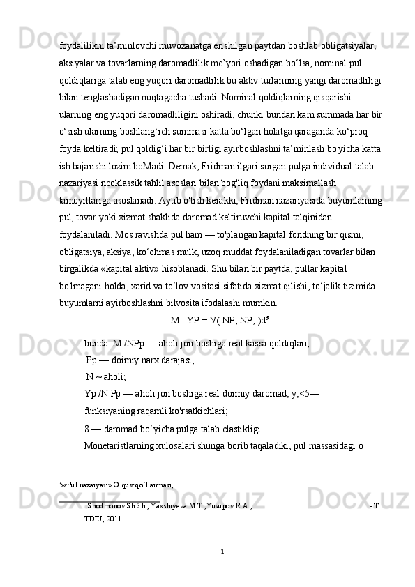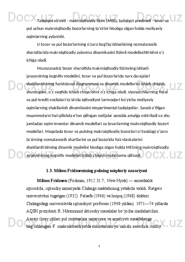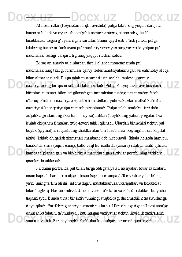 Pul bozorida uzoq muddatli muvozanat. M.Fridmenning monetar qoidasi