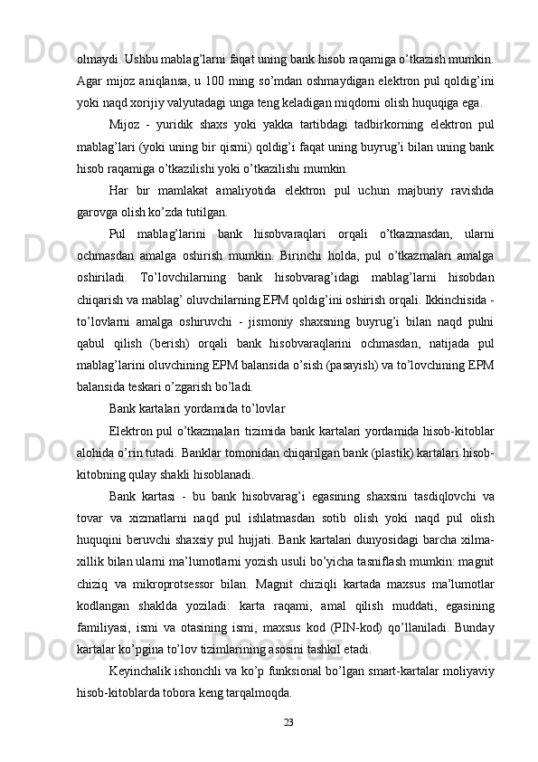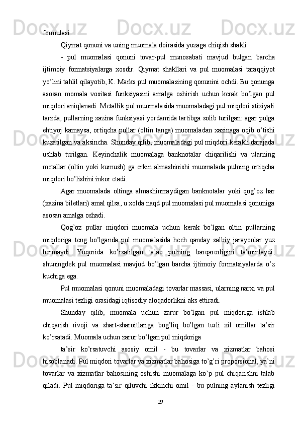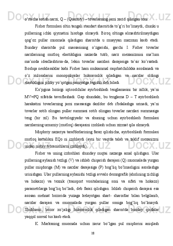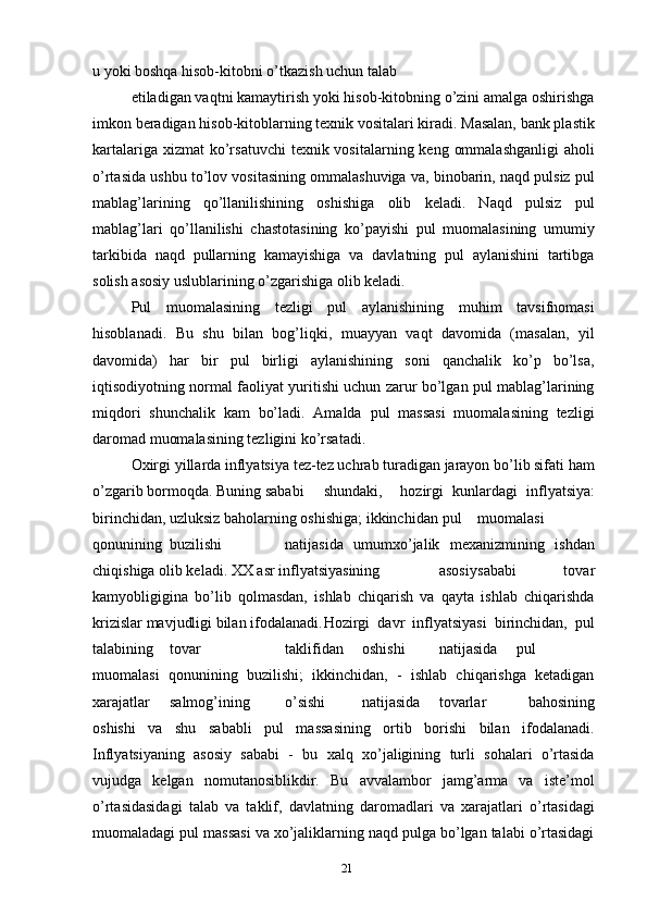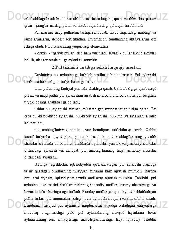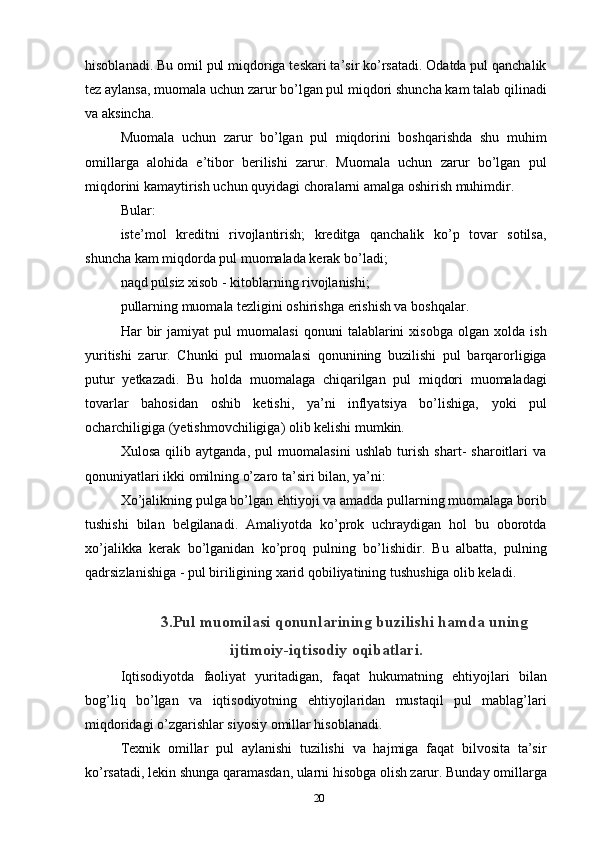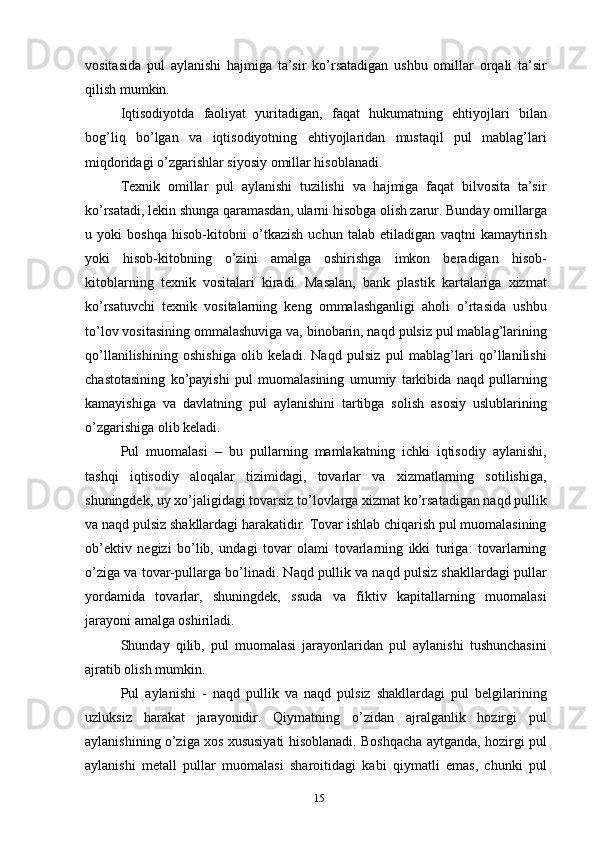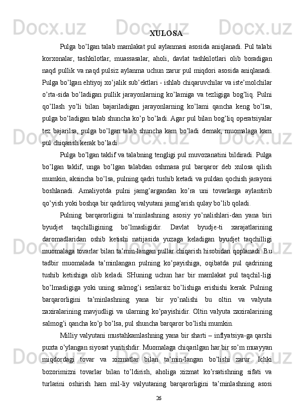 Pullarga bo’lgan talab va uni tartibga solish usullari