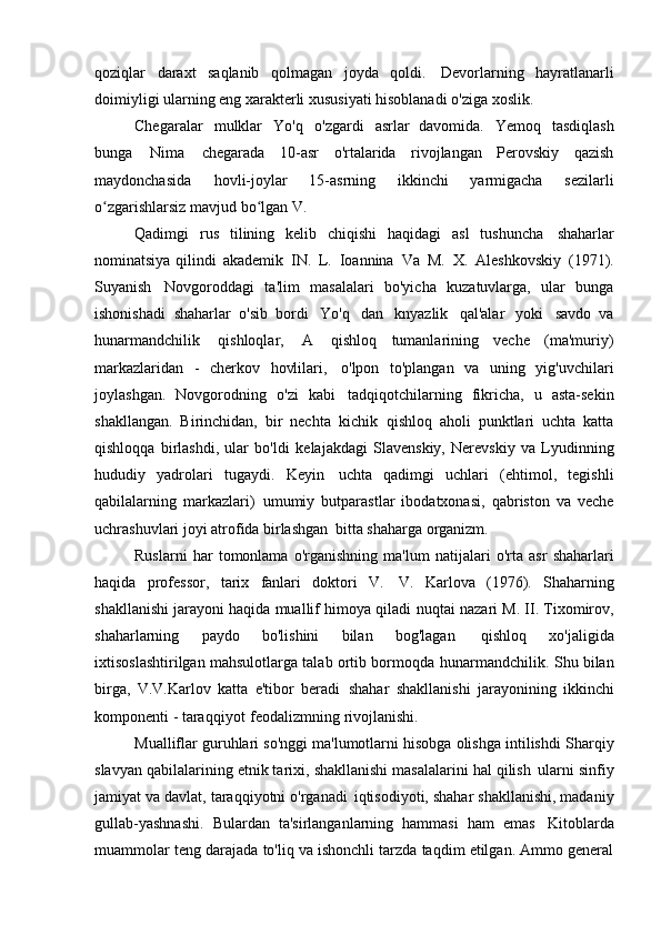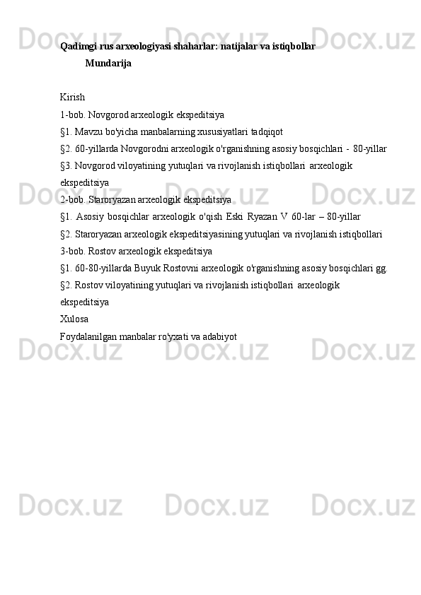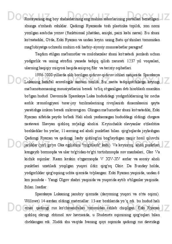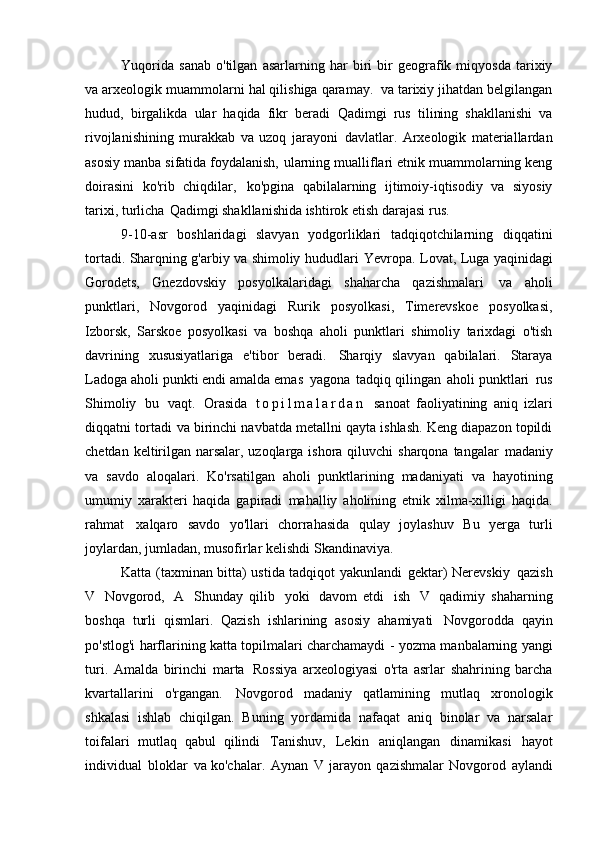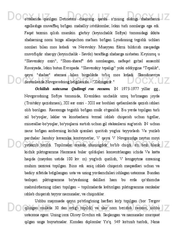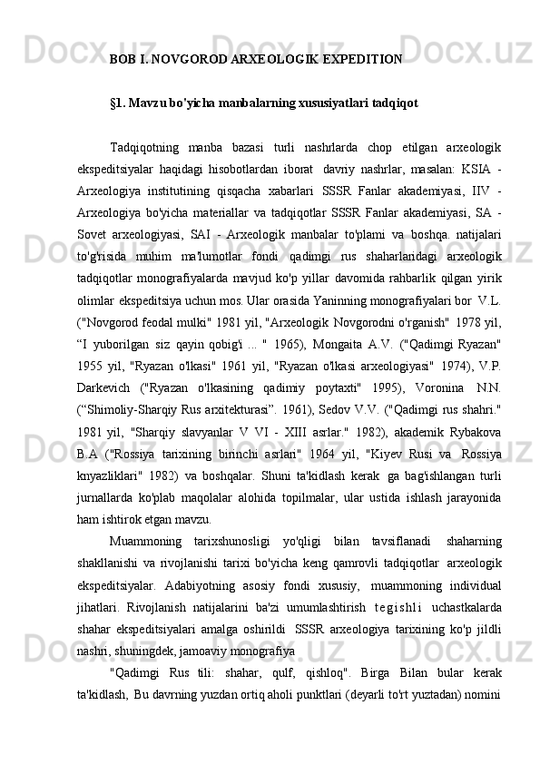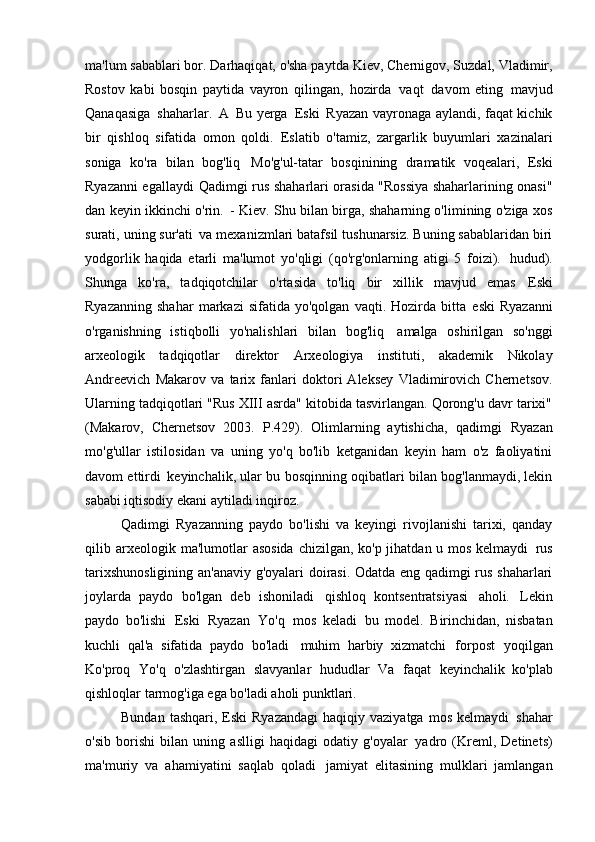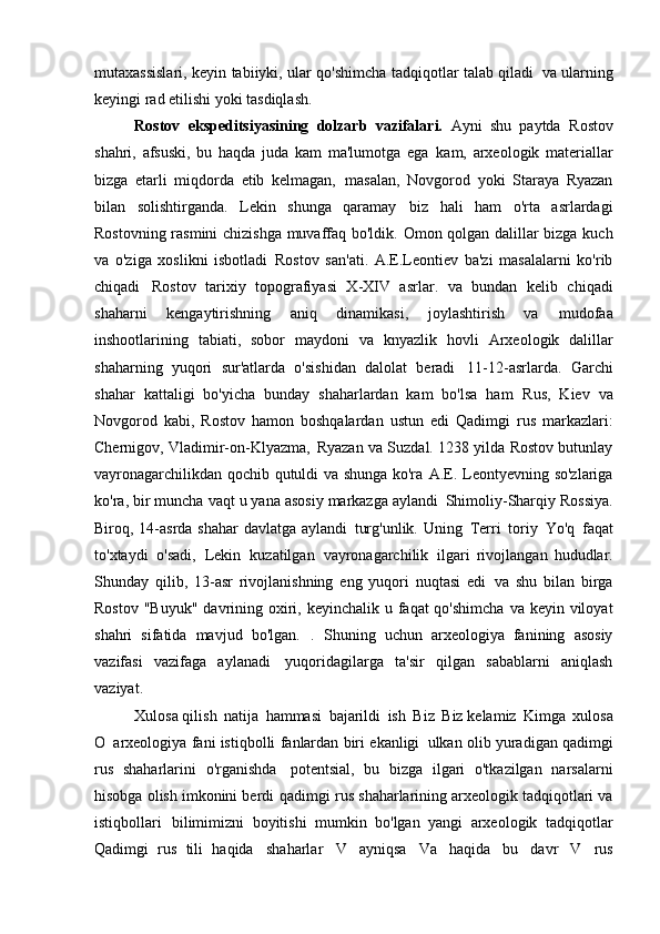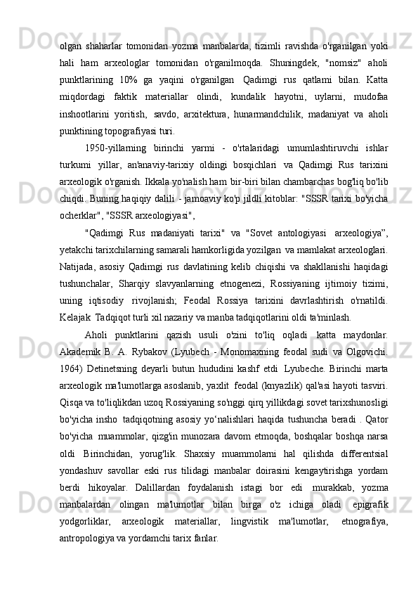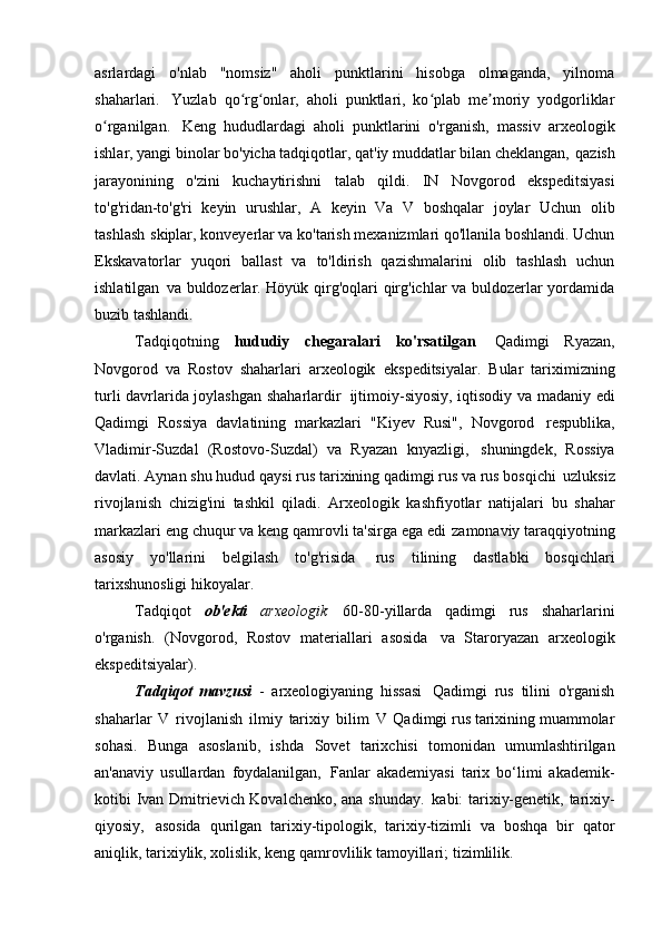Qadimgi rus arxeologiyasi shaharlar: natijalar va istiqbollar