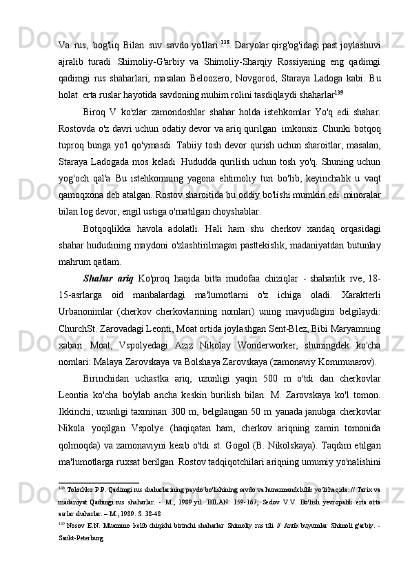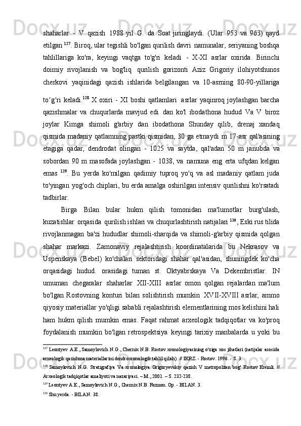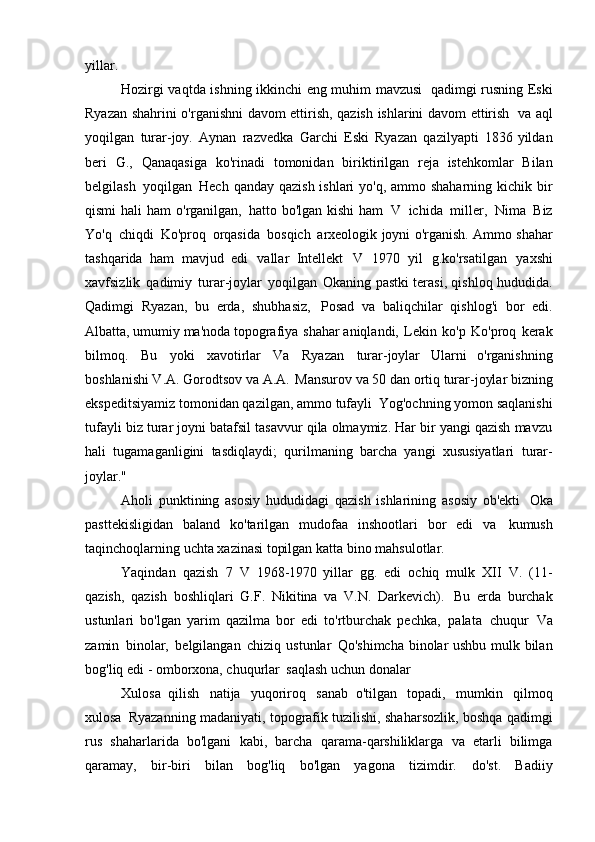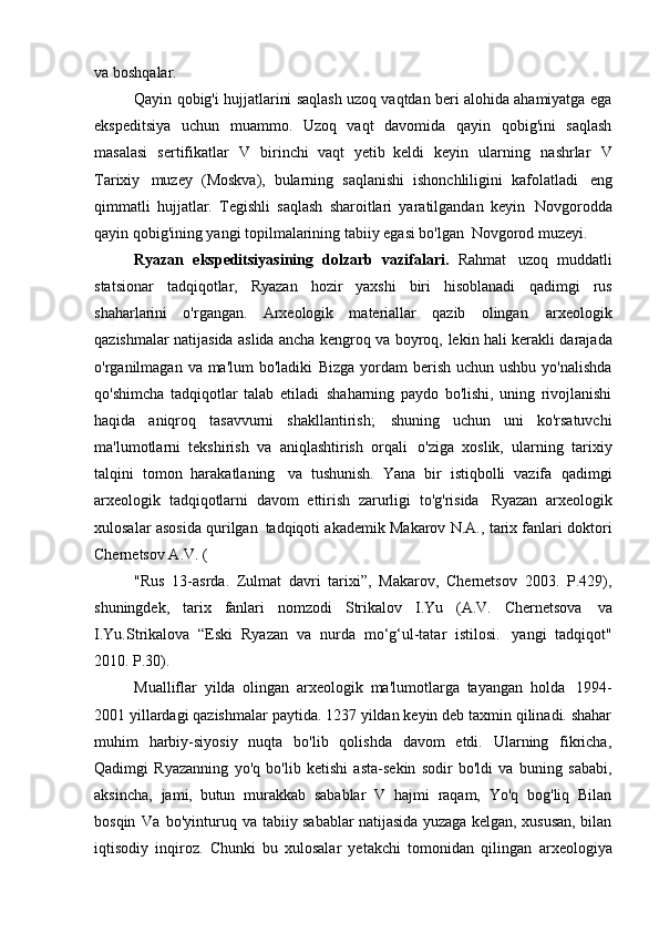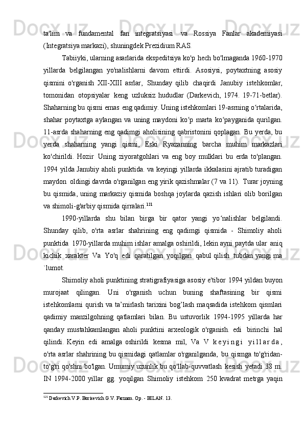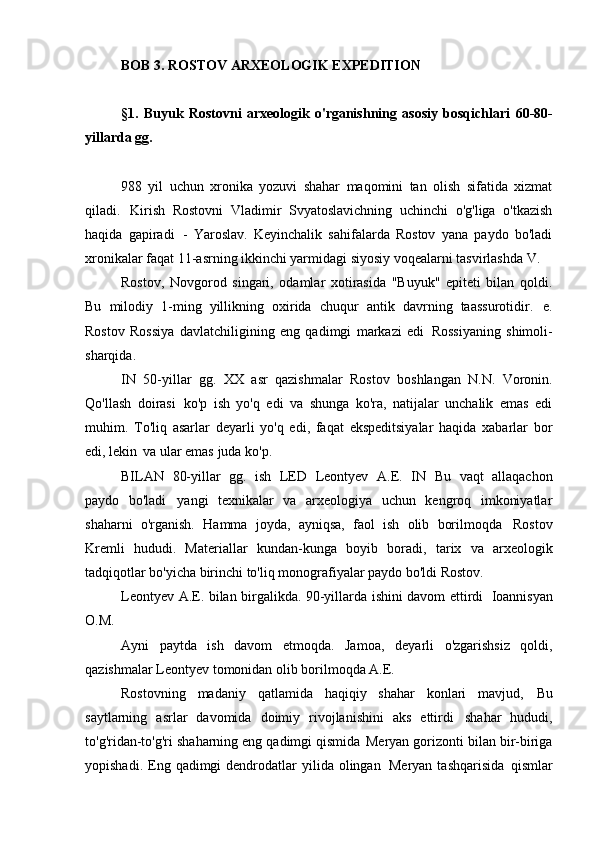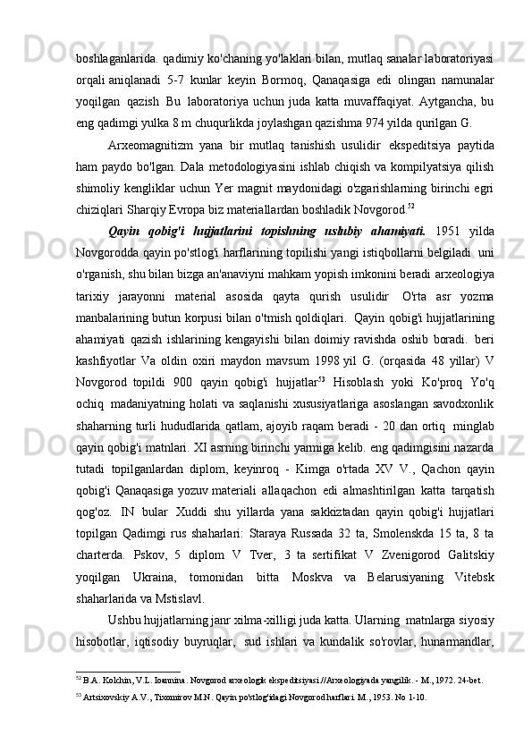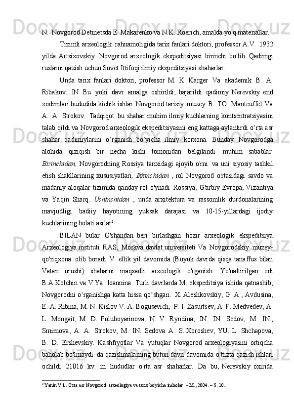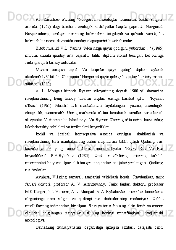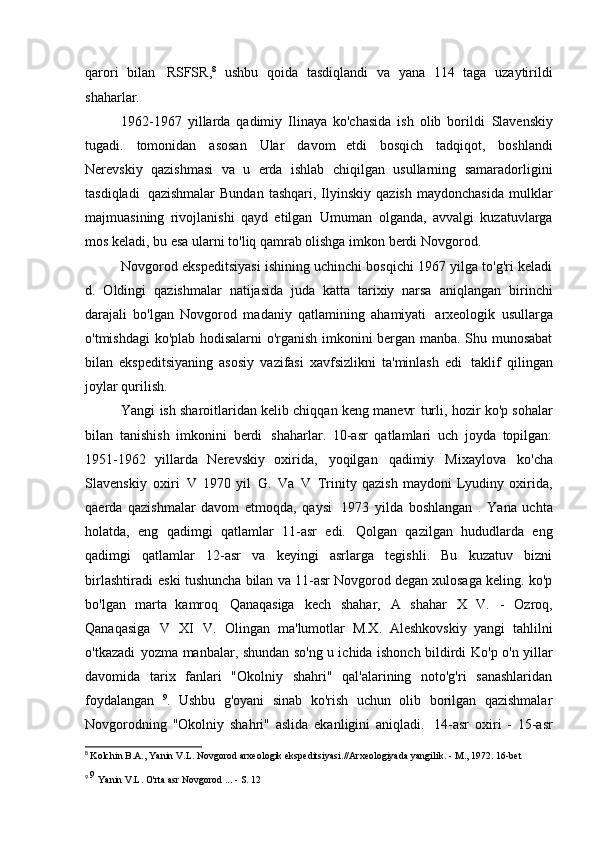 Qadimgi rus arxeologiyasi shaharlar: natijalar va istiqbollar
